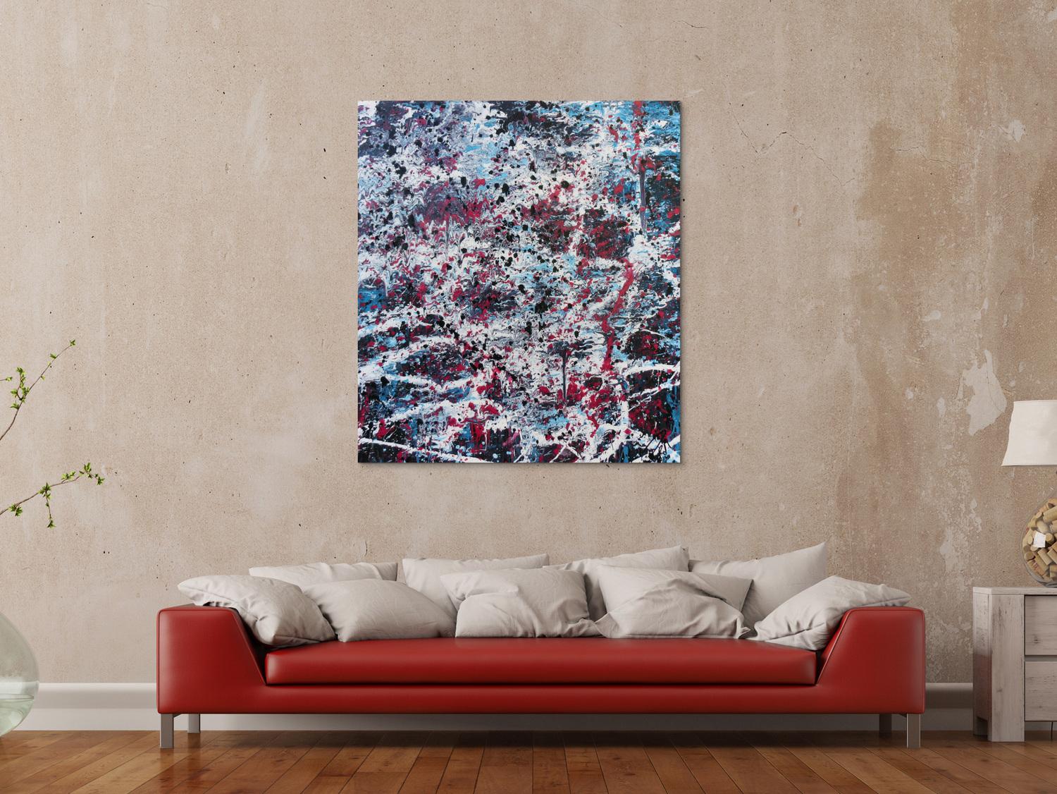 Abstraktes Gemälde auf Leinwand Abstraktes Acrylbild modernes Gemälde in türlis oink schwarz weiß Actionpainting in 120x100cm von Alex Zerr