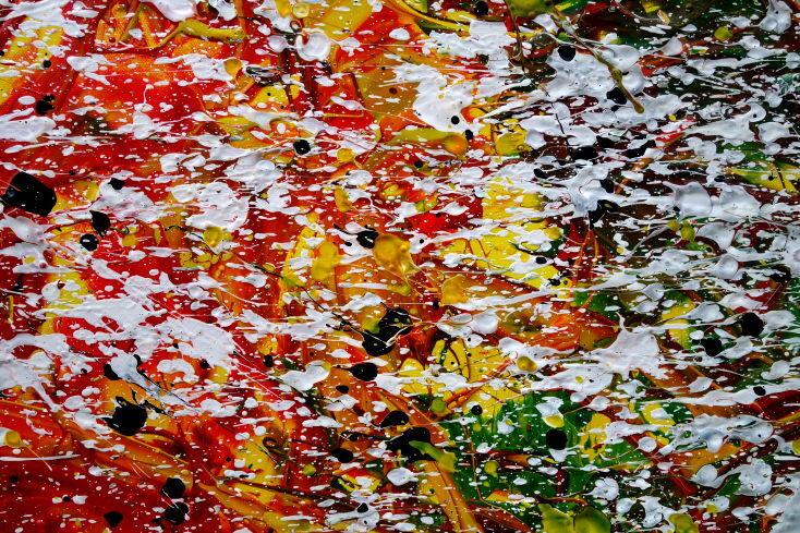 Hallo, ich bin Alex Zerr, der Künstler hinter diesem Gemälde. In meinem Atelier in Bad Lippspringe erschaffe ich abstrakte Acrylbilder, überwiegend im Action-Painting-Stil. Meißtens mit Acrylfarben und auf sehr großen XXL-Leinwänden, die meinem kreativen Prozess besonders viel Freiheit erlauben und oft zu beeindruckenden Gemälden führen.