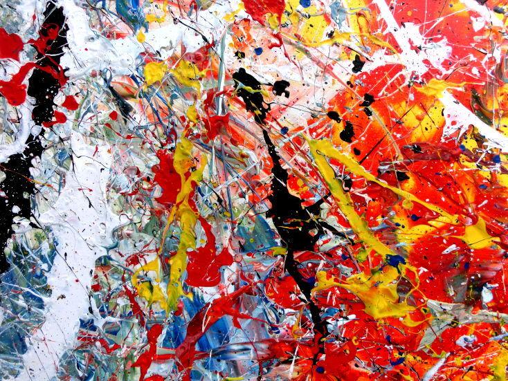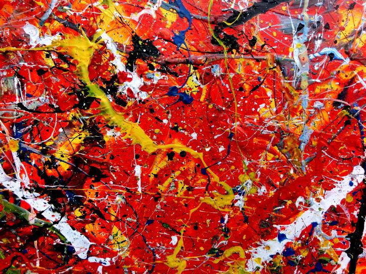 Hallo, ich bin Alex Zerr, der Künstler hinter diesem Gemälde. In meinem Atelier in Bad Lippspringe erschaffe ich abstrakte Acrylbilder, überwiegend im Action-Painting-Stil. Meißtens mit Acrylfarben und auf sehr großen XXL-Leinwänden, die meinem kreativen Prozess besonders viel Freiheit erlauben und oft zu beeindruckenden Gemälden führen.