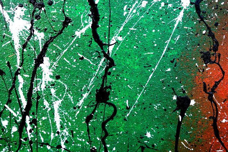 Abstraktes Acrylbild orange grün schwarz weiß sehr modern zeitgenössisch expressionistisch