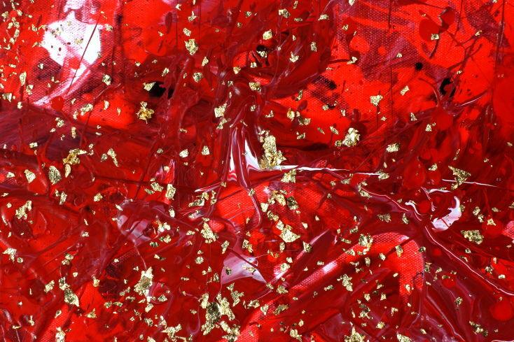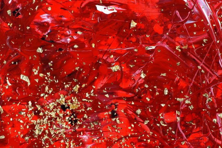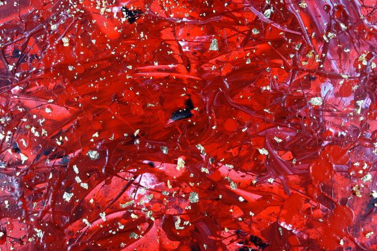 Abstraktes Acrylbild rot gold Modern Art zeitgenössisch expressionistisch