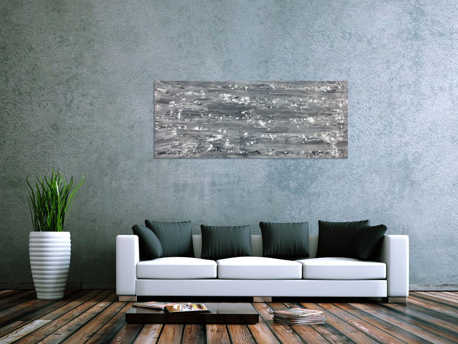 Abstraktes Gemälde auf Leinwand Abstraktes Acrylbild schlicht in grau schwarz weiß in 60x150cm von Alex Zerr
