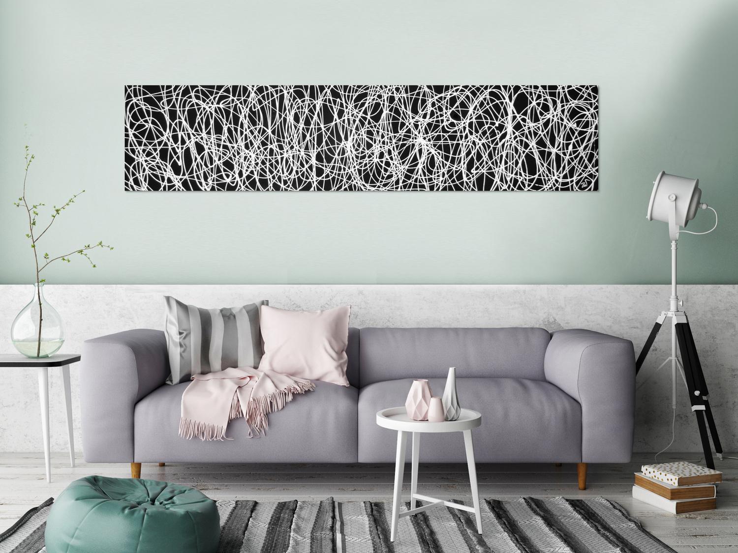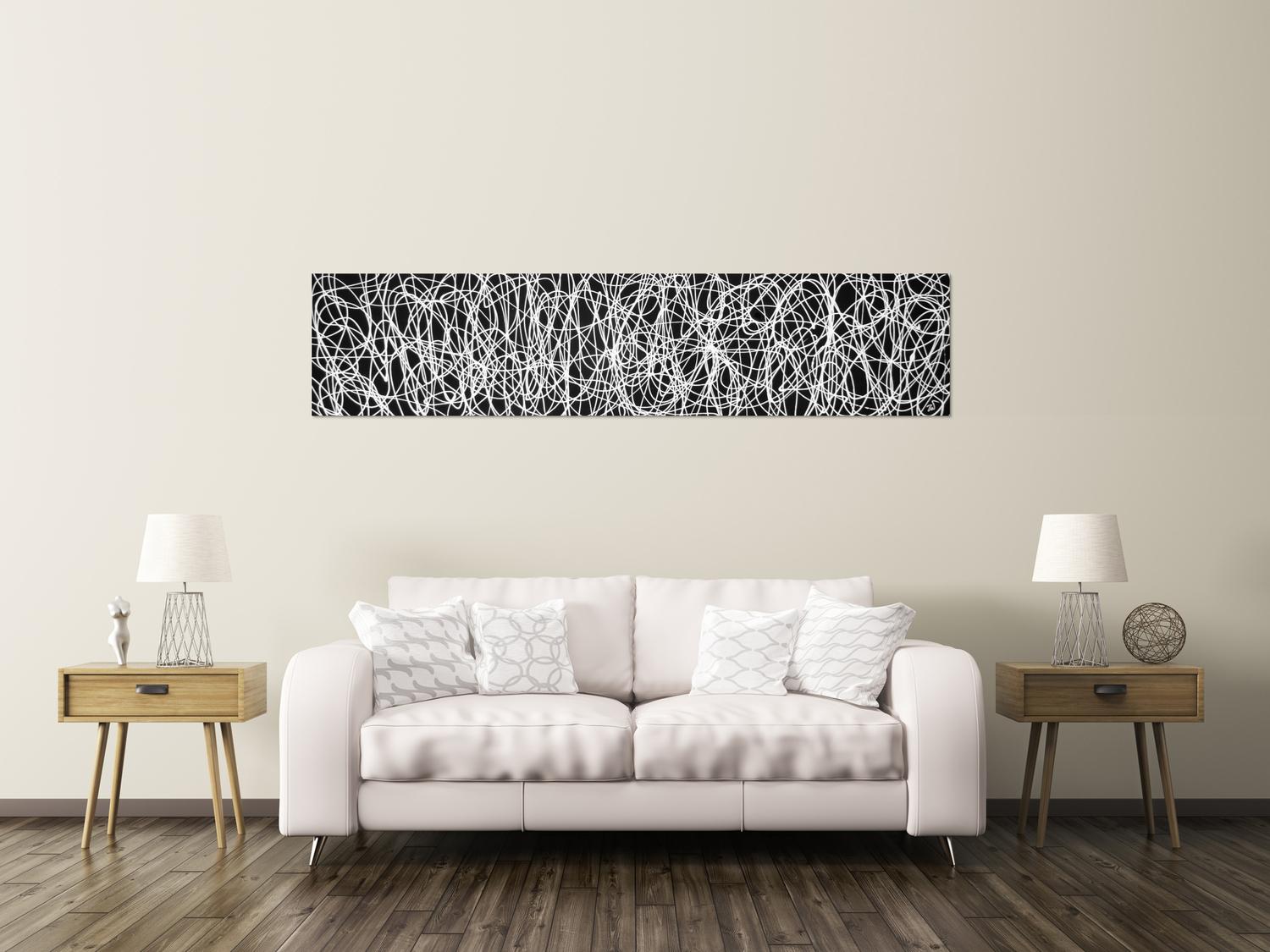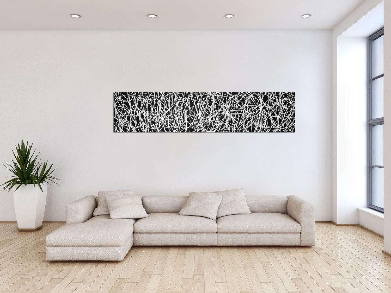 Abstraktes Gemälde auf Leinwand Abstraktes Acrylbild schwarz/weiß in 40x200cm von Alex Zerr