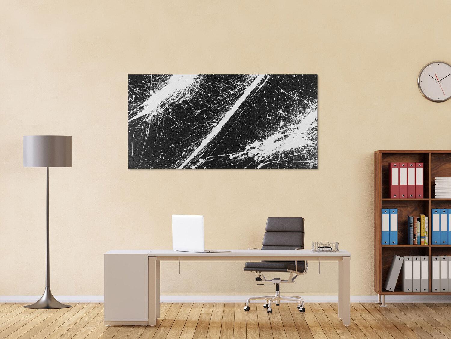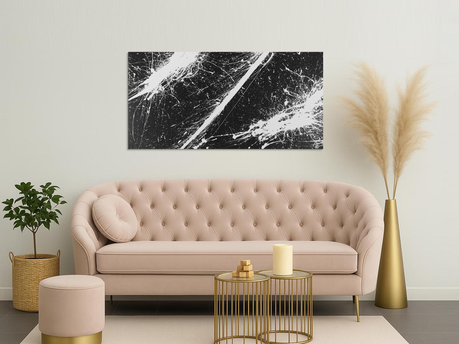 Abstraktes Acrylbild schwarz weiß Action Paintng Modern Art auf Leinwand handgemalt