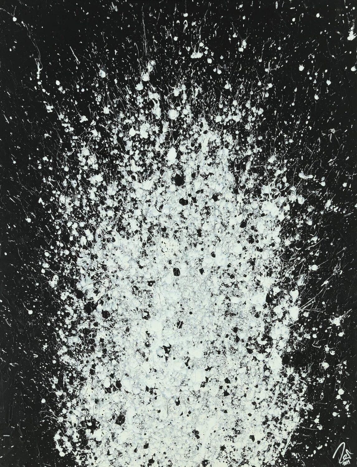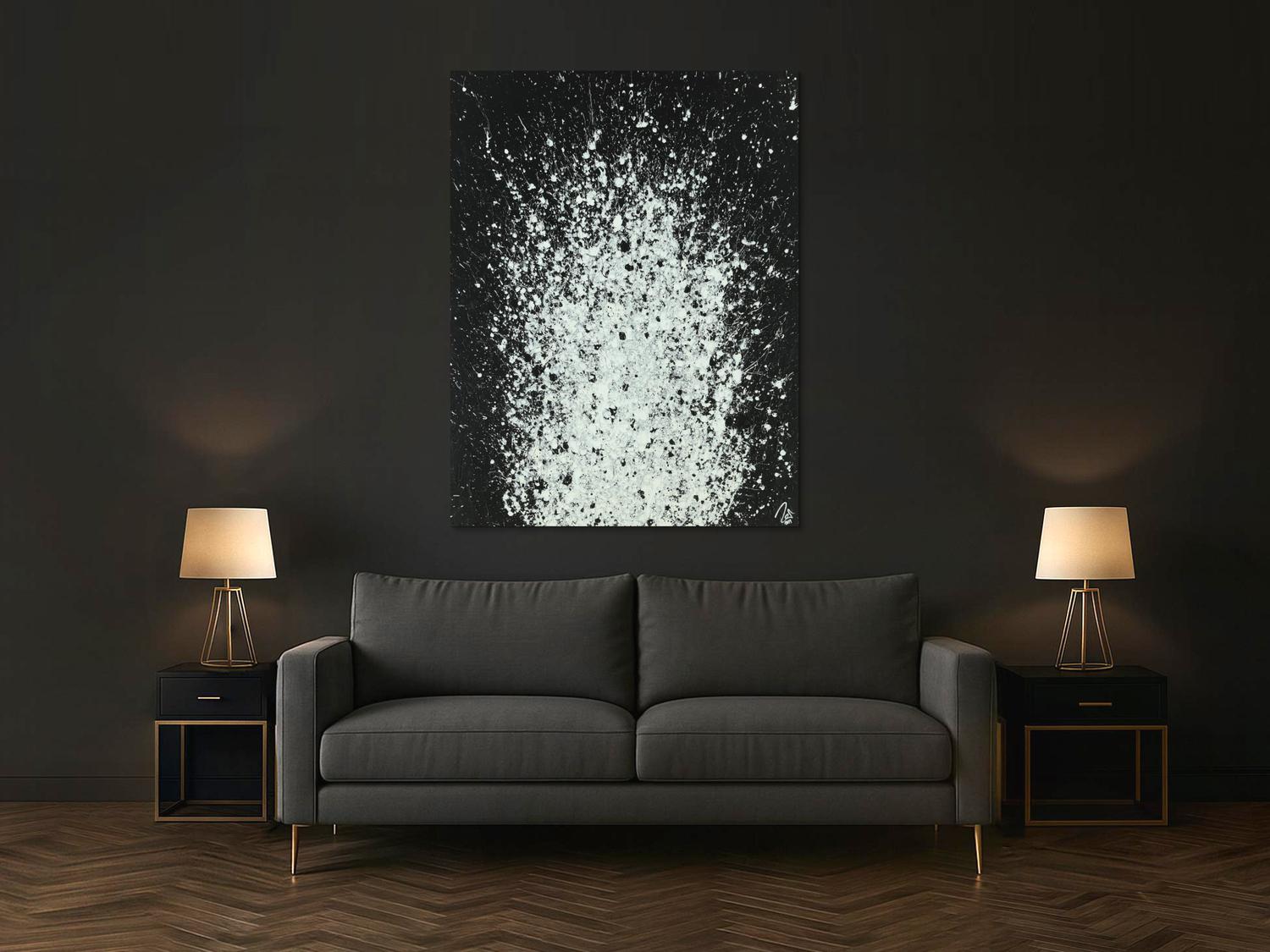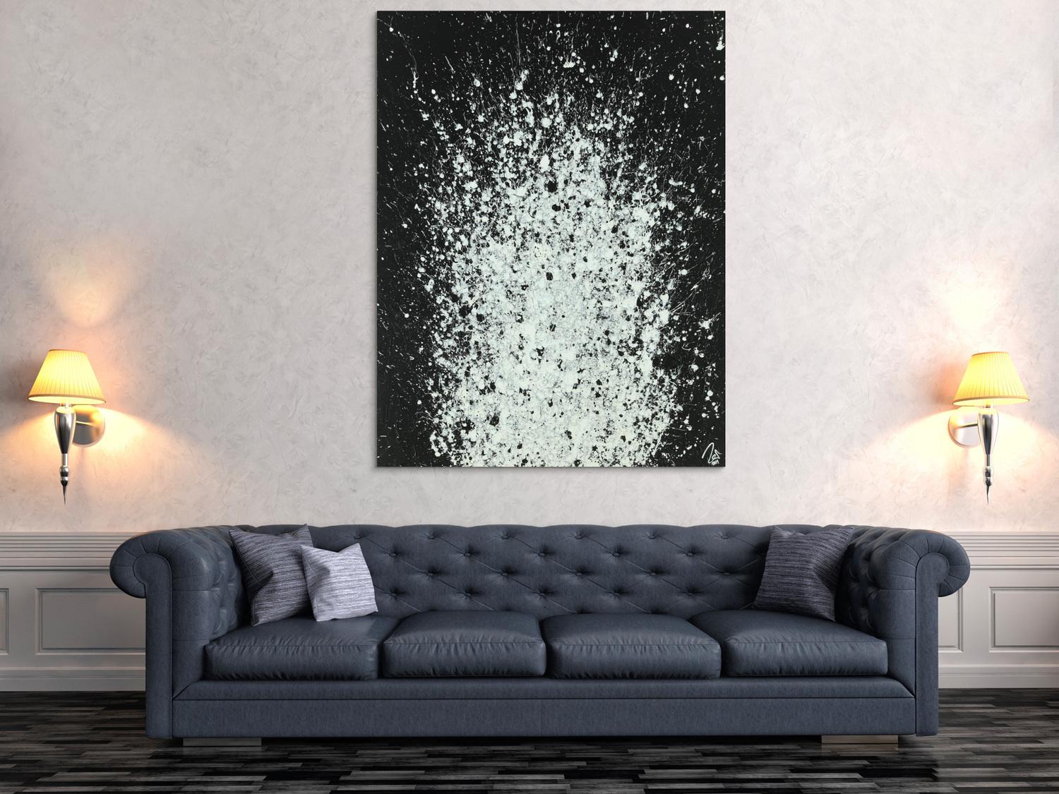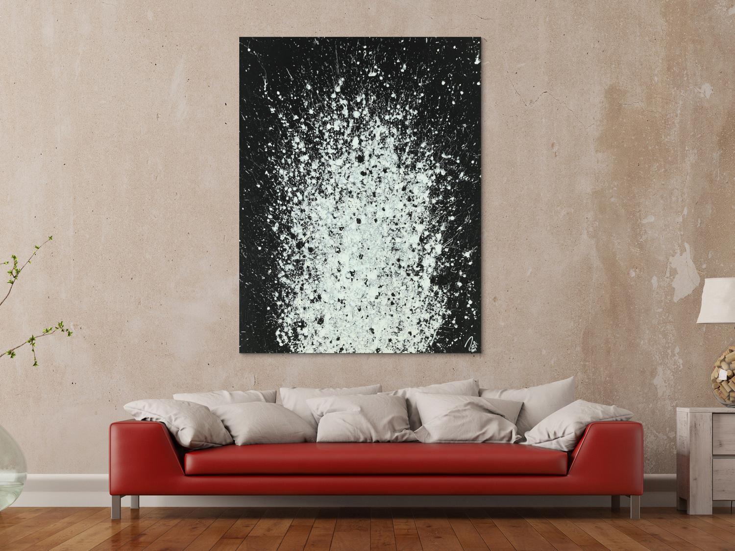 Abstraktes Acrylbild schwarz weiß Action Paintnig sehr modern zeitgenössisch handgemalt auf Leinwand