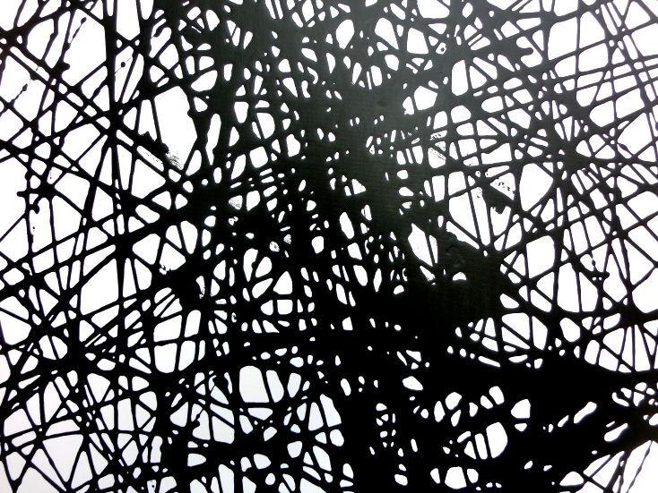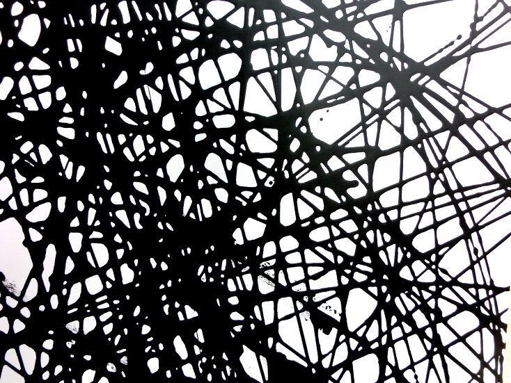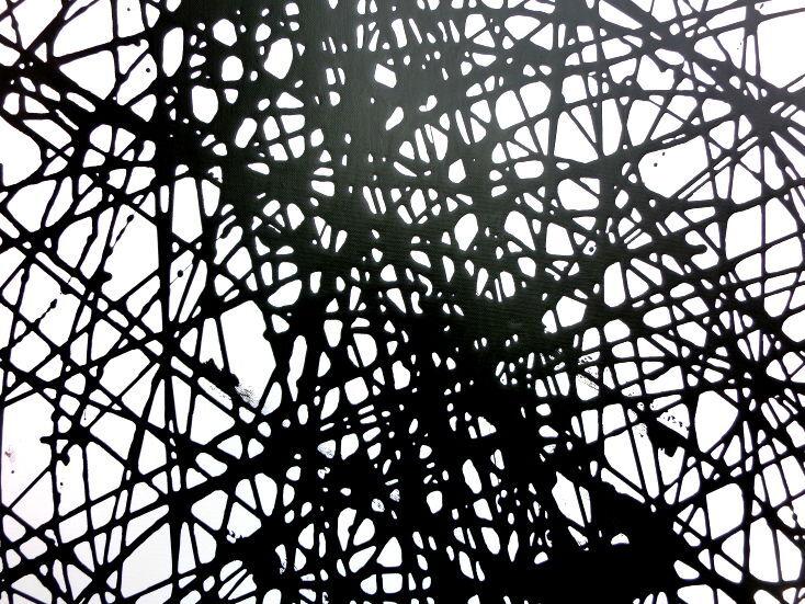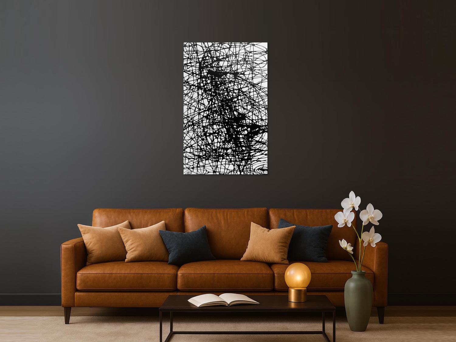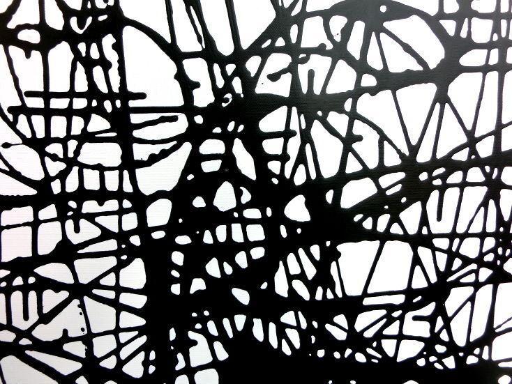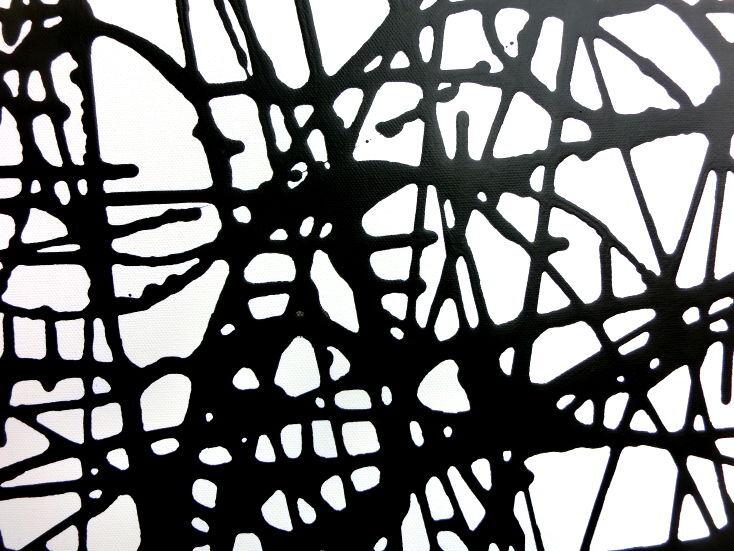 Abstraktes Acrylbild schwarz weiß minmalistisch schwarze Streifen sehr modern
