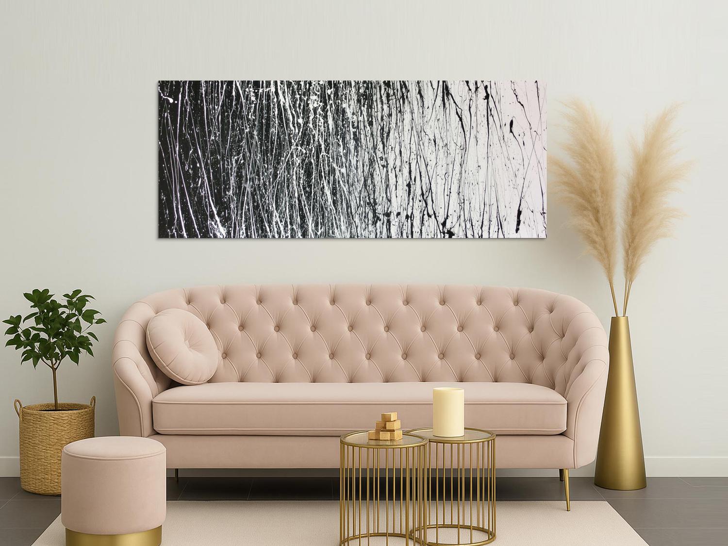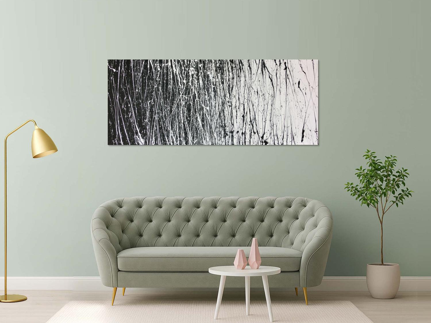 Abstraktes Gemälde auf Leinwand Abstraktes Acrylbild schwarz weiß modern in 80x200cm von Alex Zerr