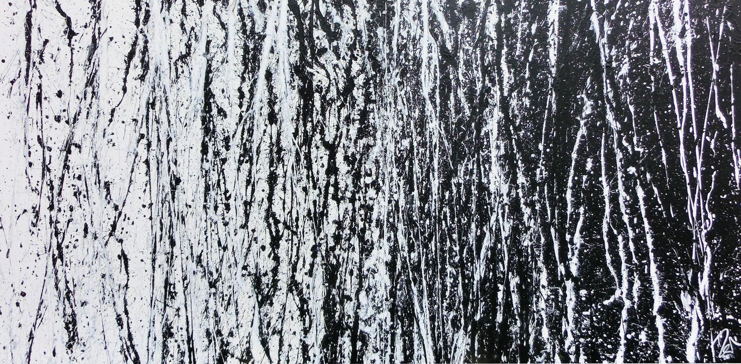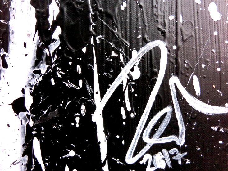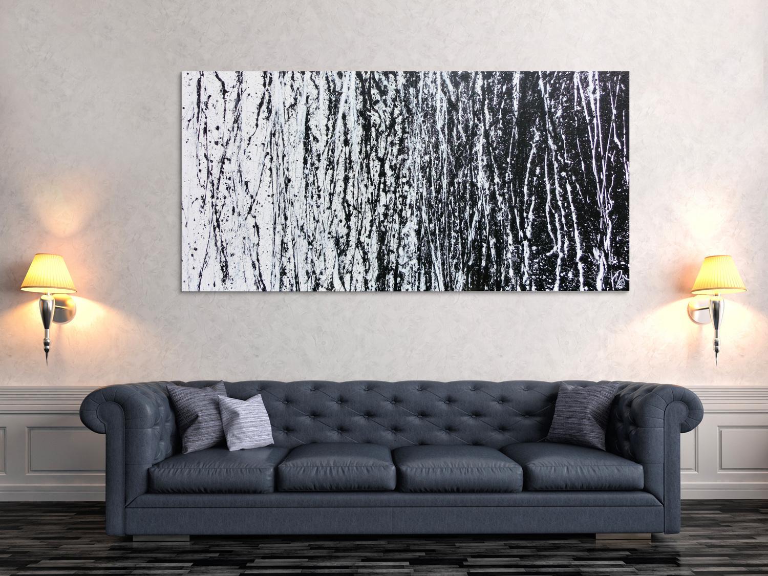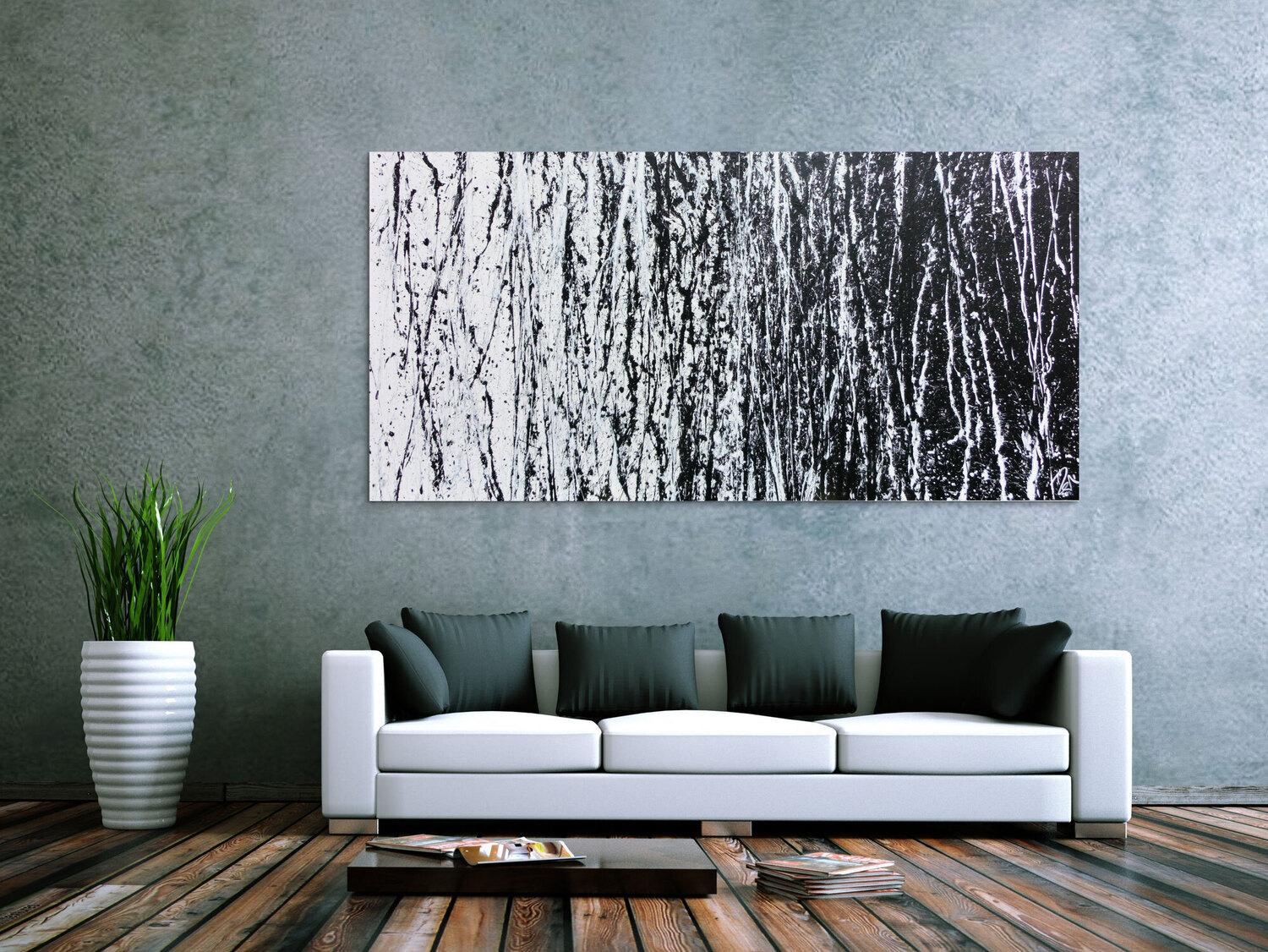 Abstraktes Acrylbild schwarz weiß sehr modern schlicht Action Painting modern art