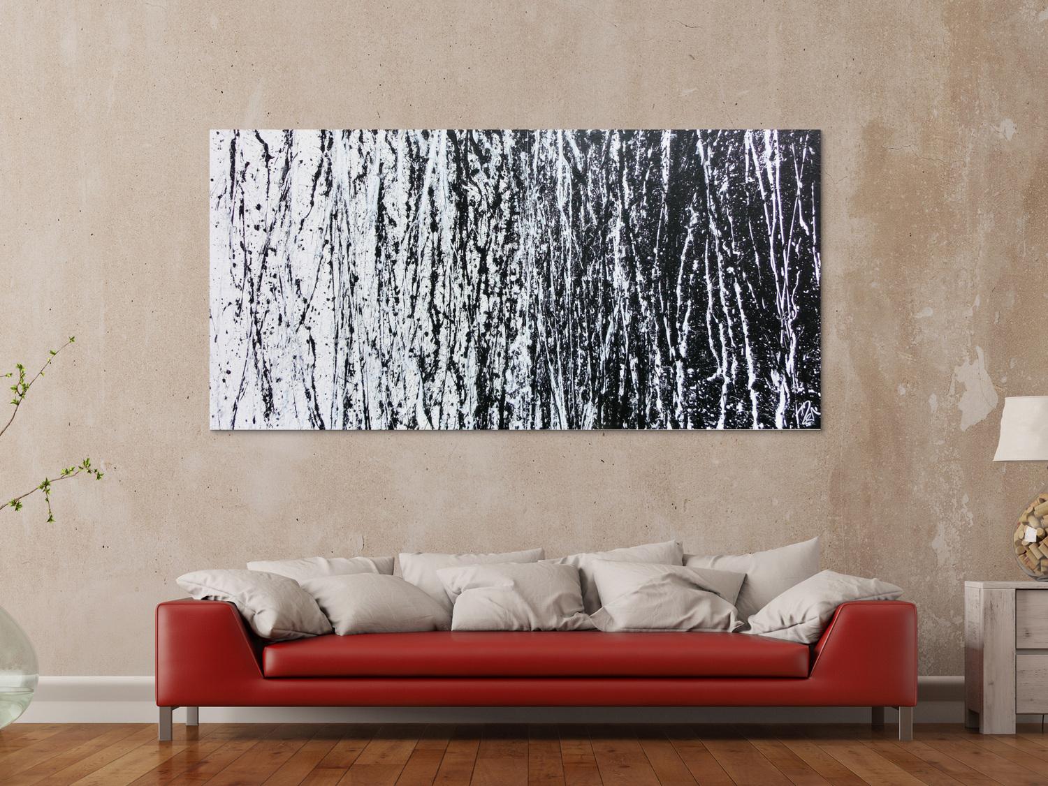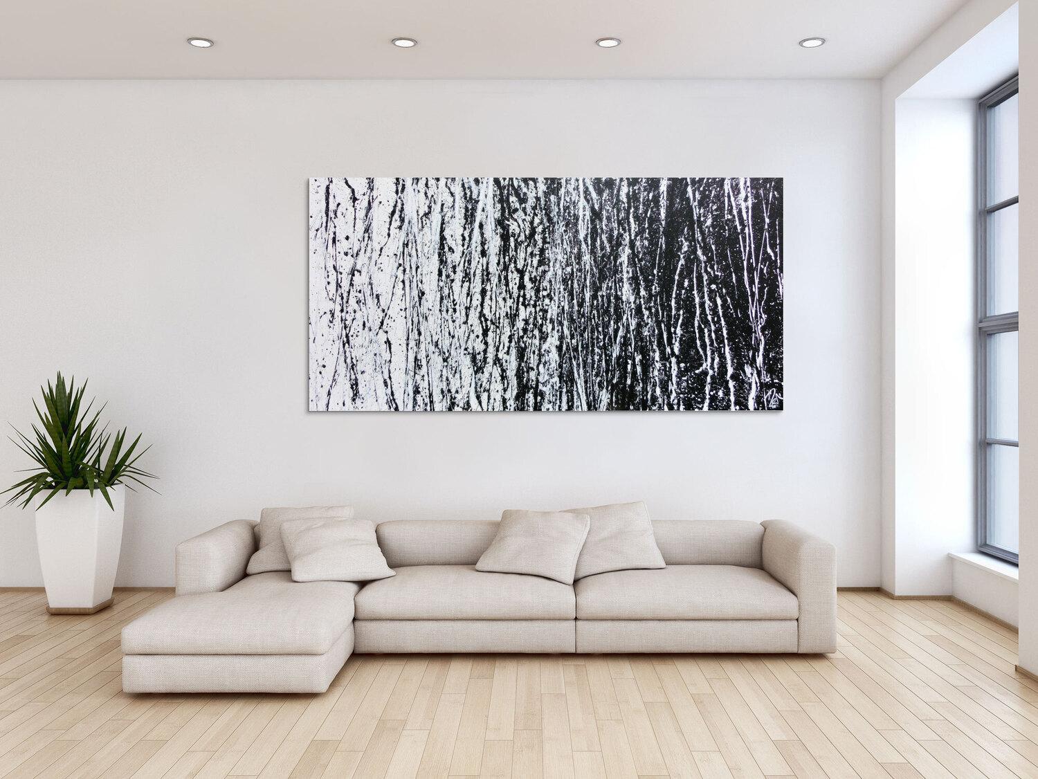 Abstraktes Gemälde auf Leinwand Abstraktes Acrylbild schwarz weiß sehr modern schlicht Action Painting modern art in 100x200cm von Alex Zerr
