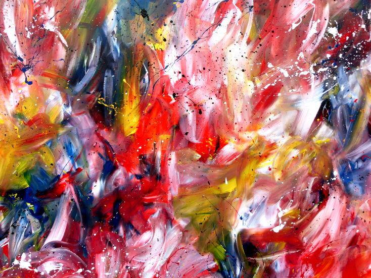 Abstraktes Acrylbild sehhe Farben sehr bunt modern und groß