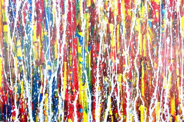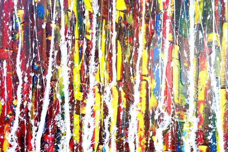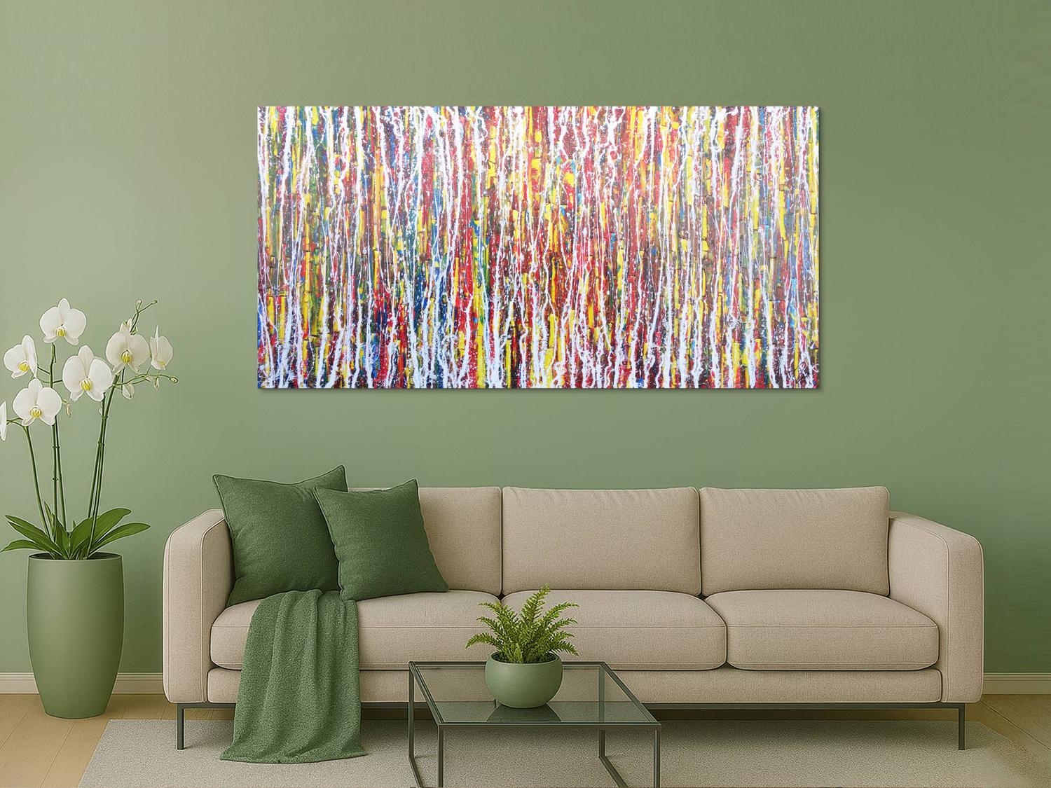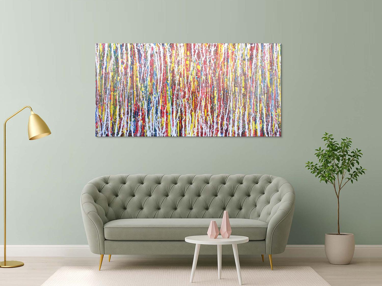 Abstraktes Gemälde auf Leinwand Abstraktes Acrylbild sehr bunt Action Painting Modern Art zeitgenössisch in 100x200cm von Alex Zerr