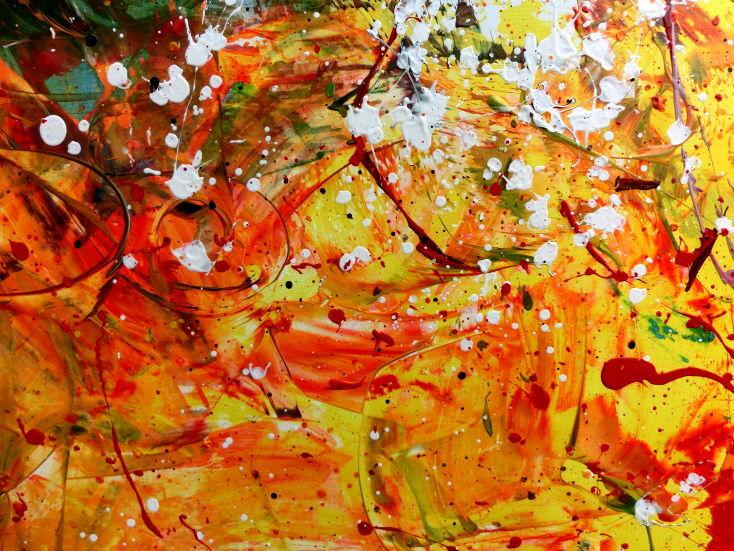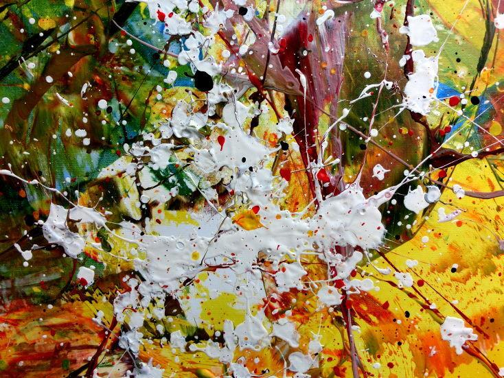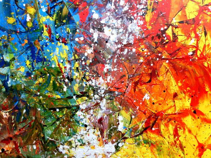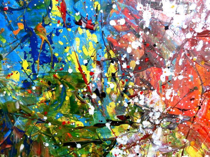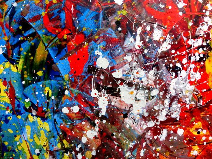Abstraktes Acrylbild sehr bunt Action Painting und Spachteltechnik modern