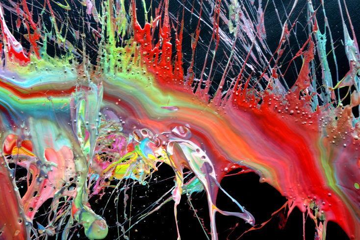Abstraktes Acrylbild sehr bunt auf schwarz Action Painting Modern Art Splash Art zeitgenössisch