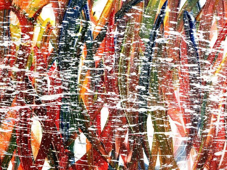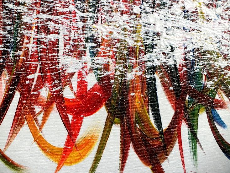 Dieses Werk ist wie alle meine Bilder: spontan entstanden, ganz intuitiv und ohne festes Konzept, und spiegelt oft meine momentane Stimmung wider wie auf der Leinwand festgehalten wurde.