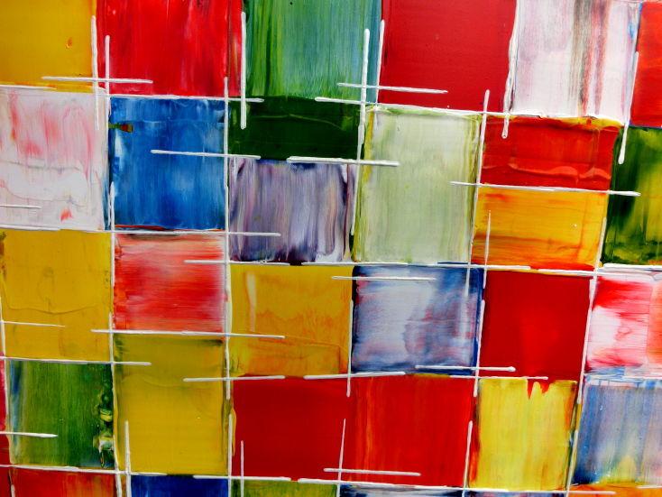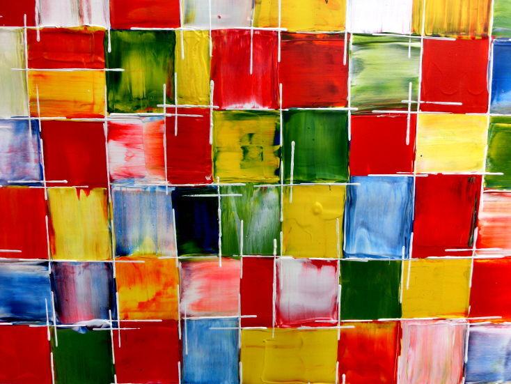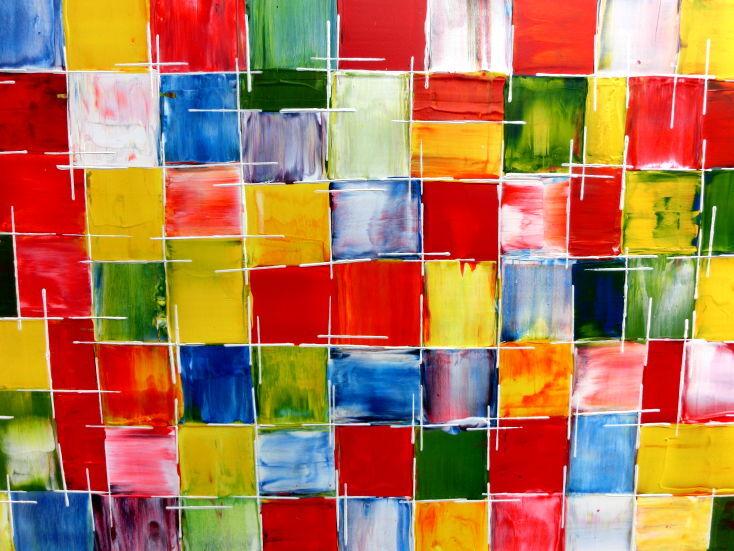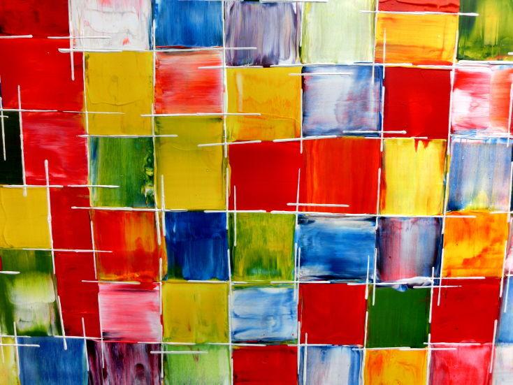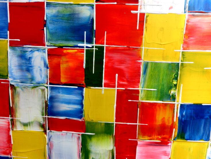 Abstraktes Acrylbild sehr bunt farbige Kacheln bunte Flächen modern und zeitgenössisch