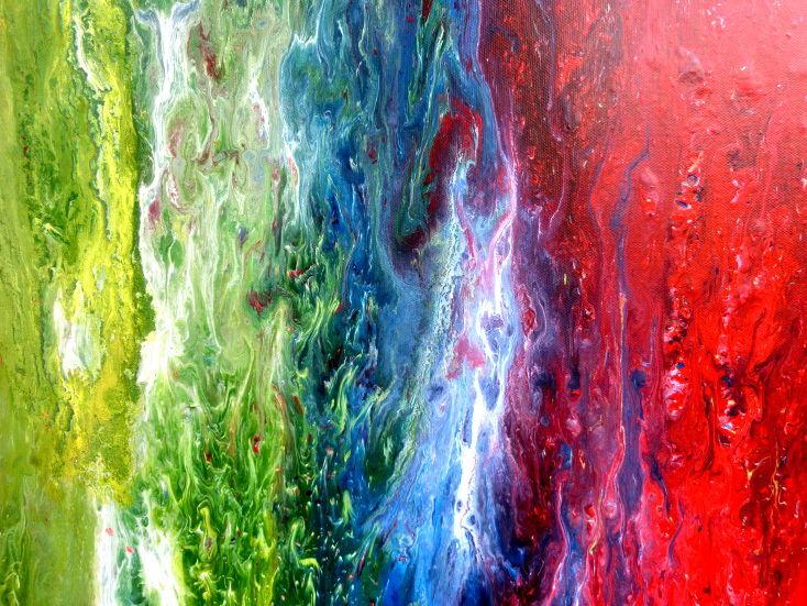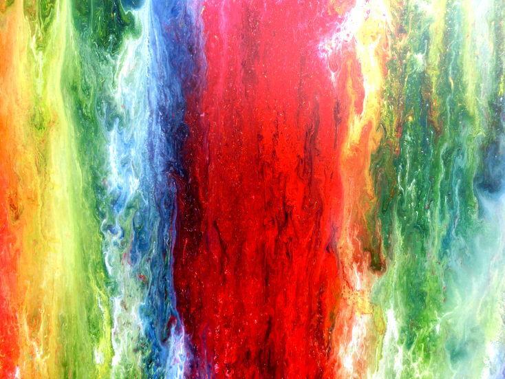 Abstraktes Acrylbild sehr bunt Fließtechnik modern sehr farbenfroh
