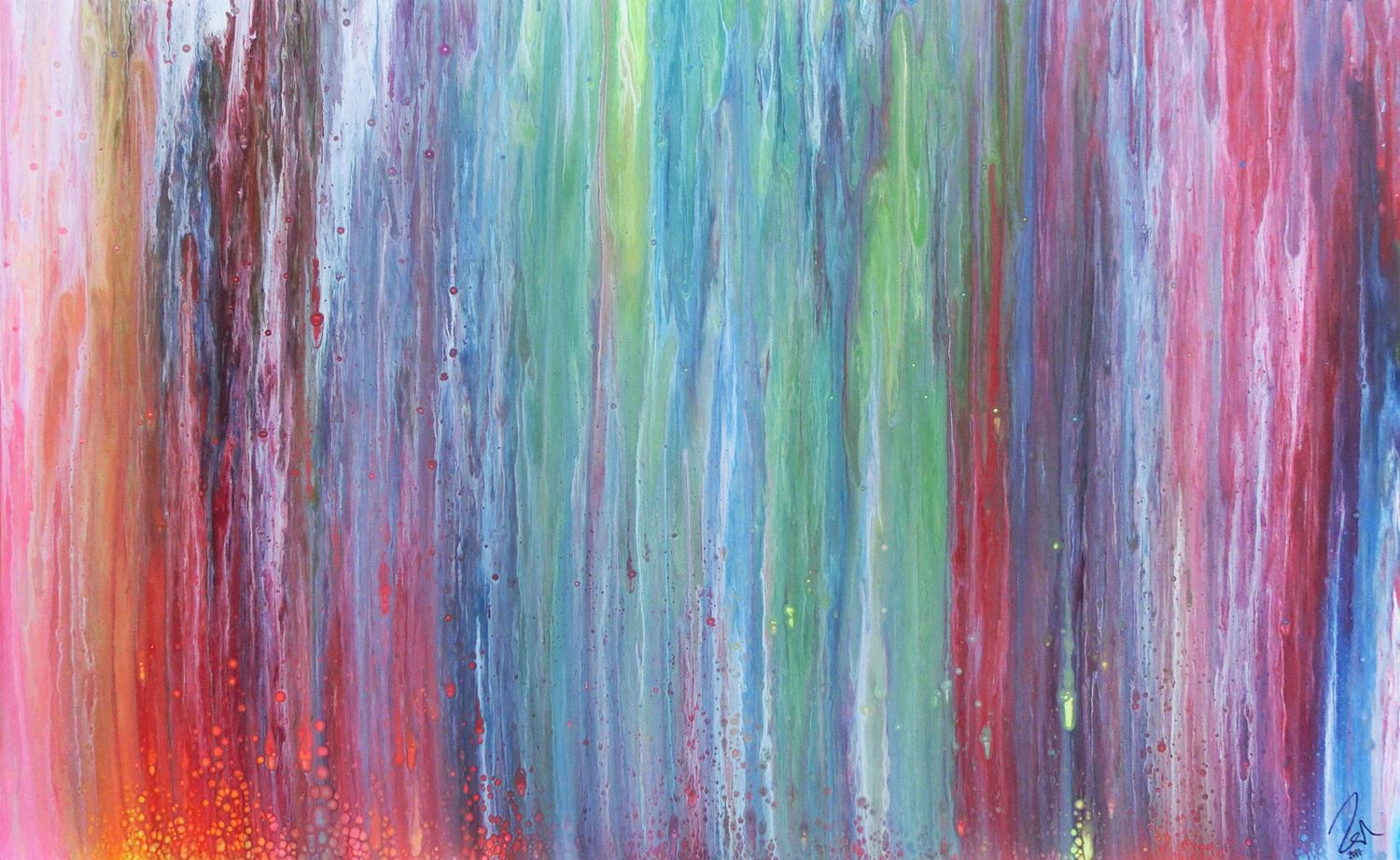 Abstraktes Acrylbild sehr bunt Fließtechnik modern und sehr farbenfroh