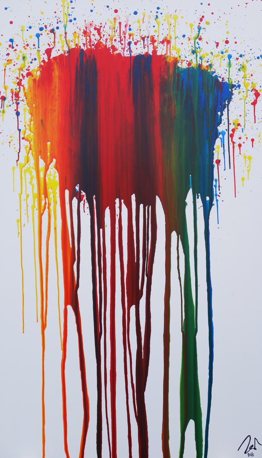 Abstraktes Gemälde auf Leinwand Abstraktes Acrylbild sehr bunt in Fließtechnik Fluidpainting zeitgenössisch modern im Hochformat in 140x80cm von Alex Zerr