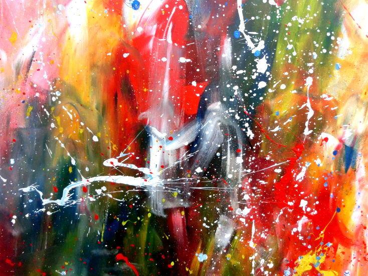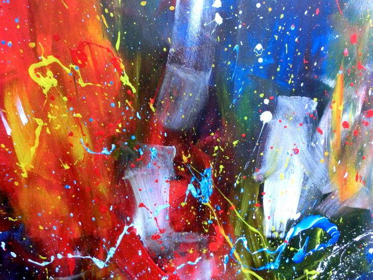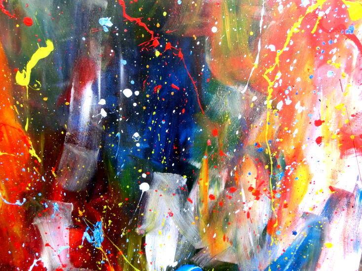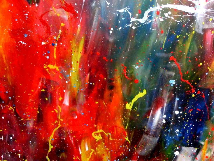 Abstraktes Acrylbild sehr bunt Mischtechnik modern Action Painting