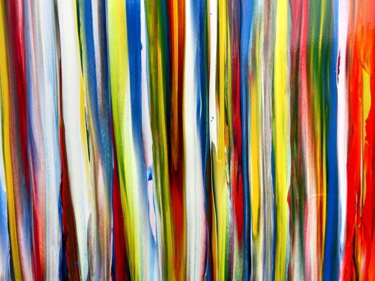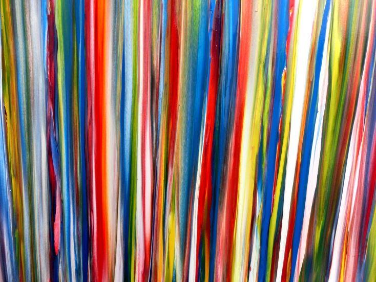 Abstraktes Acrylbild sehr bunt mit vielen farbigen Streifen modern zeitgenössisch