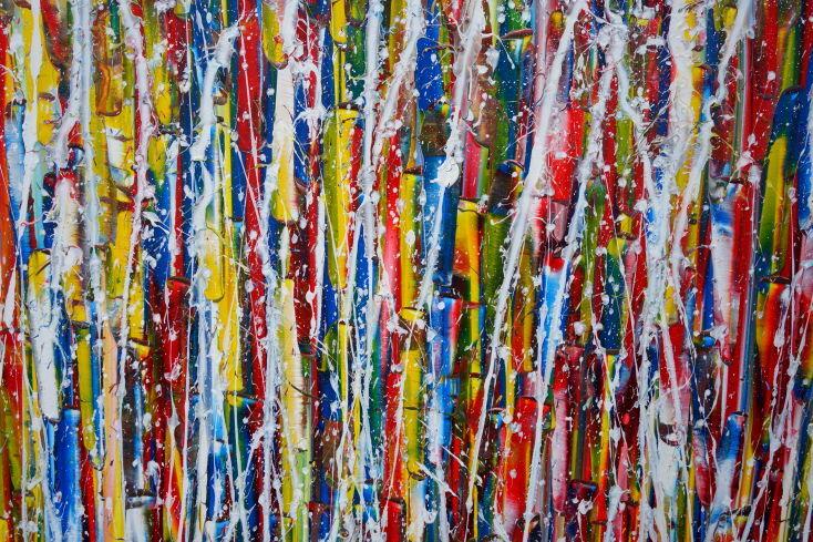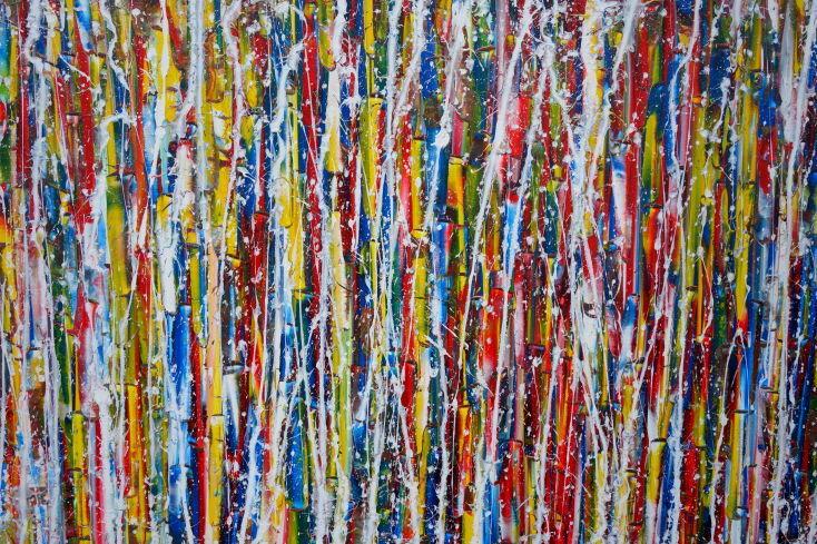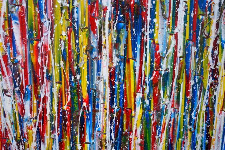 Abstraktes Acrylbild sehr bunt modern Action Painting Modern Art zeitgenössisch expressionistisch