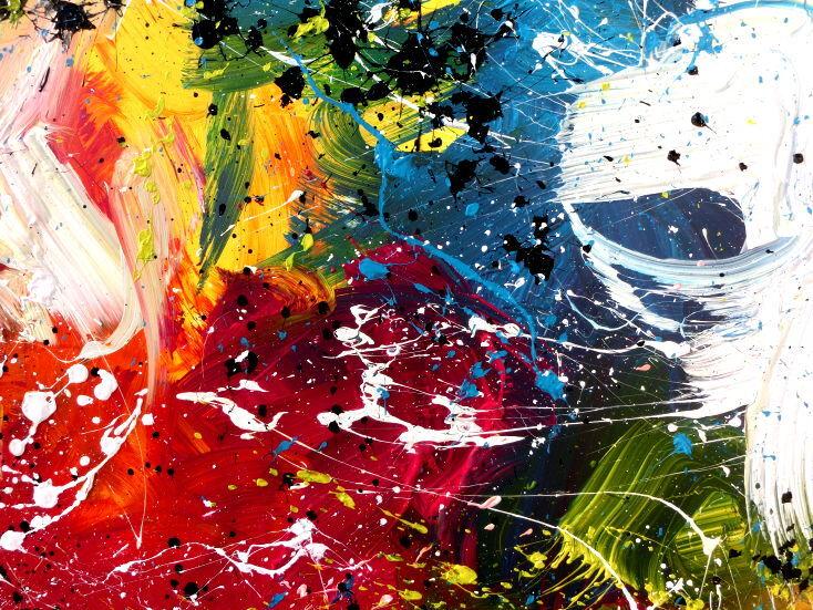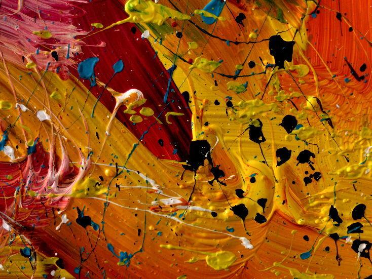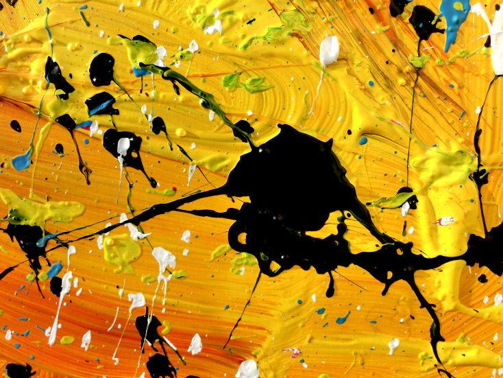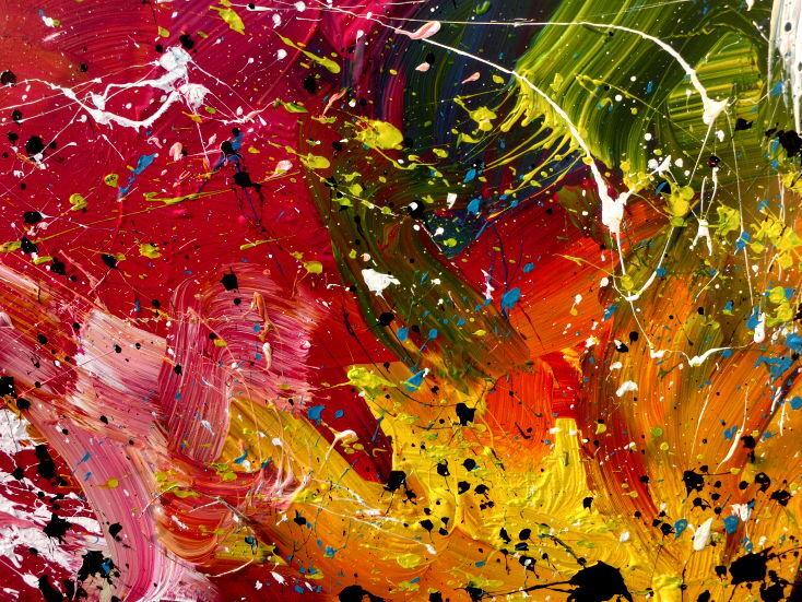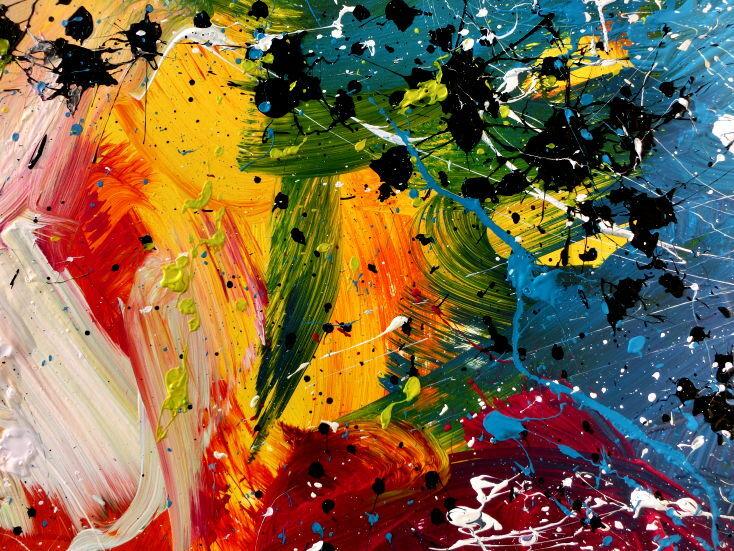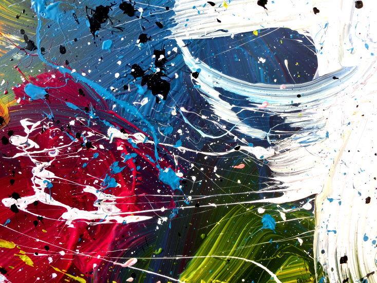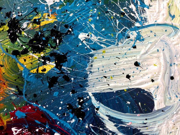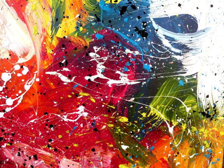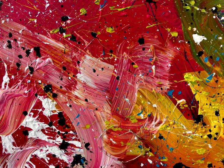 Abstraktes Acrylbild sehr bunt modern Action Painting viele helle Farben