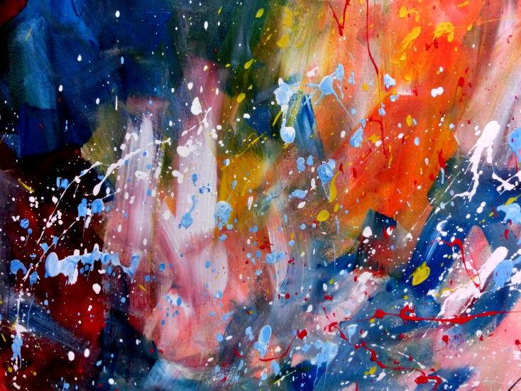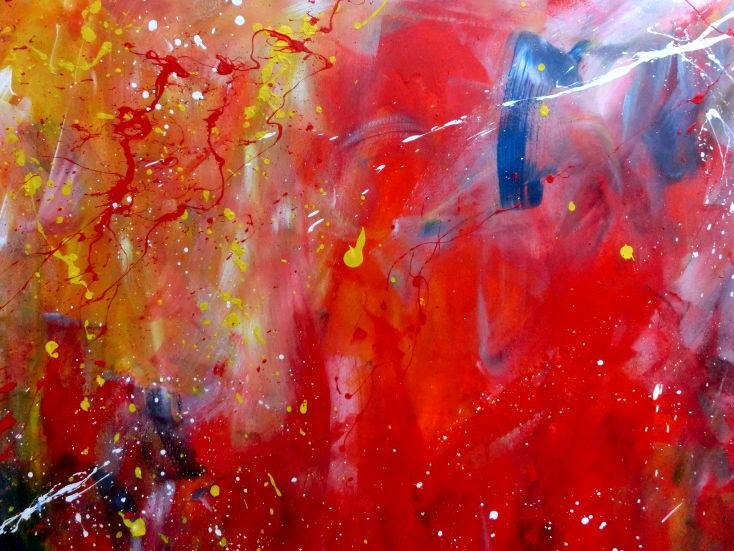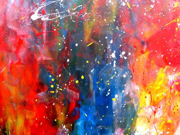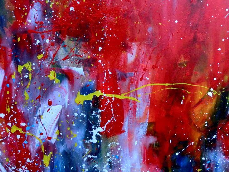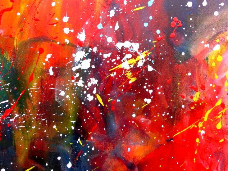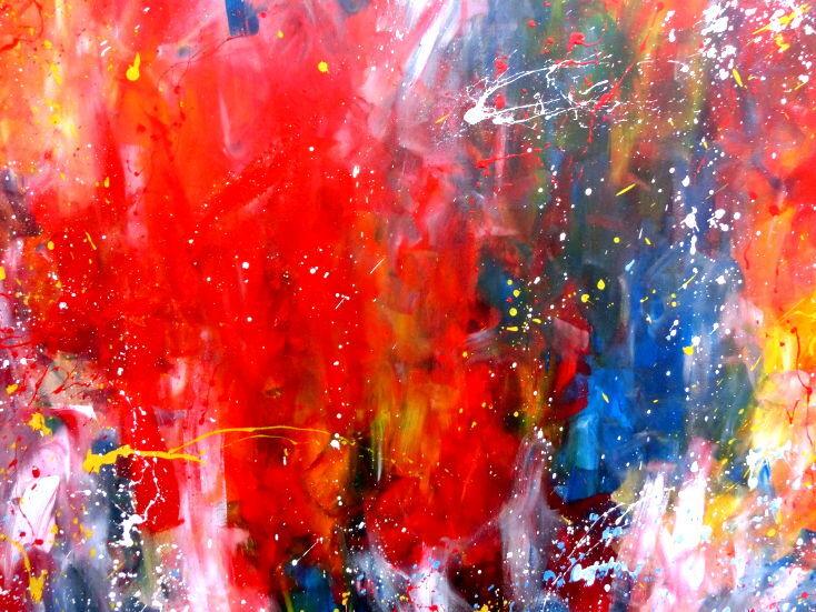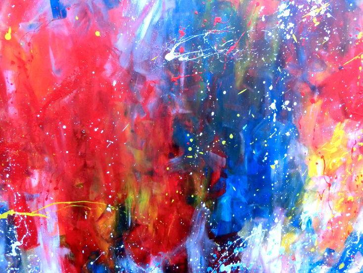 Abstraktes Acrylbild sehr bunt modern Art Mischtechnik Action Painting viele Farben rot blau gelb weiß