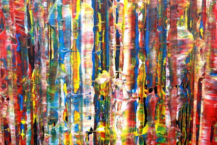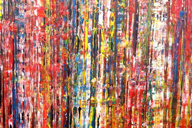 Hallo, ich bin Alex Zerr, der Künstler hinter diesem Gemälde. In meinem Atelier in Bad Lippspringe erschaffe ich abstrakte Acrylbilder, überwiegend im Action-Painting-Stil. Meißtens mit Acrylfarben und auf sehr großen XXL-Leinwänden, die meinem kreativen Prozess besonders viel Freiheit erlauben und oft zu beeindruckenden Gemälden führen.