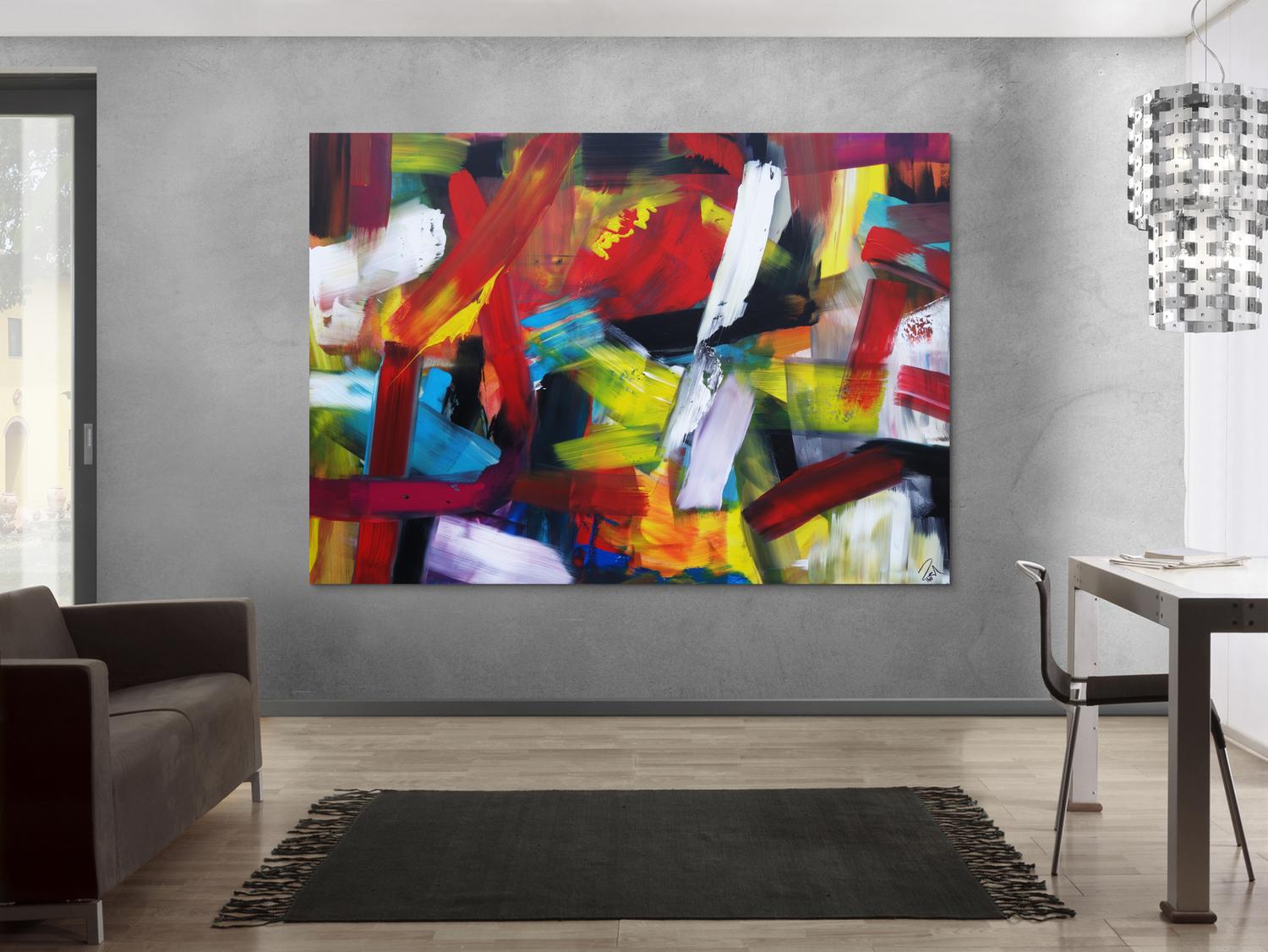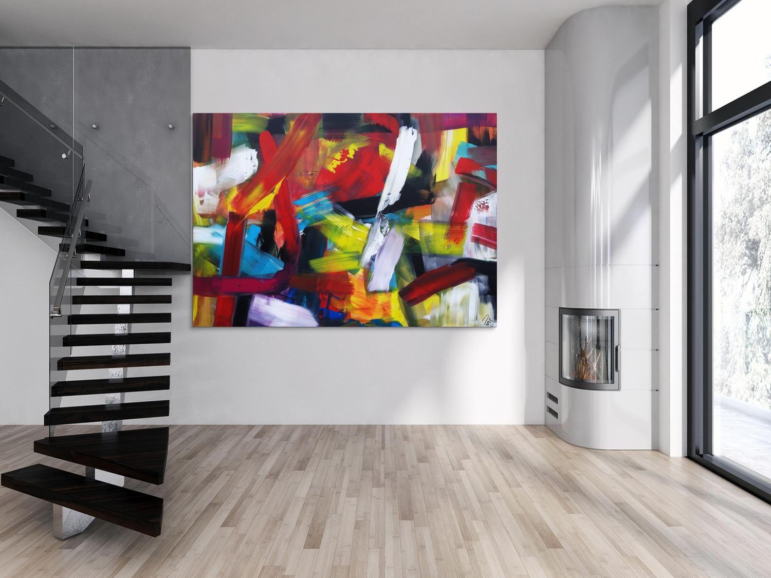 Die großformatigen, abstrakten Acrylgemälde sind ideal für Wohnzimmer, Schlafzimmer, Büros oder Geschäftsräume. Sie setzen farbenfrohe Akzente und schaffen eine lebendige, individuelle Atmosphäre die Sie und Ihre Gäste oder Kunden beeindrucken wird.