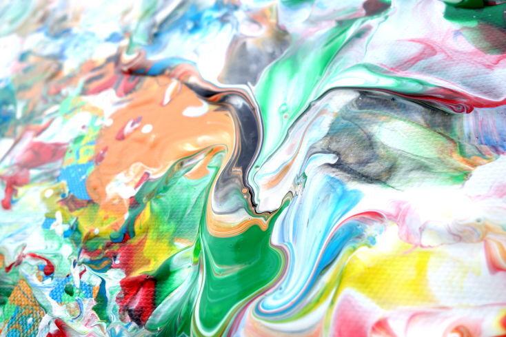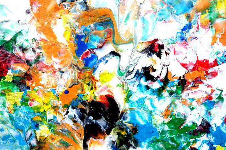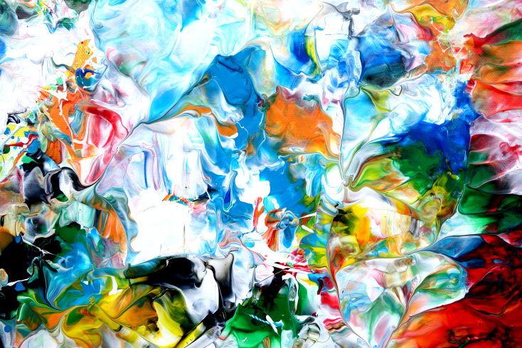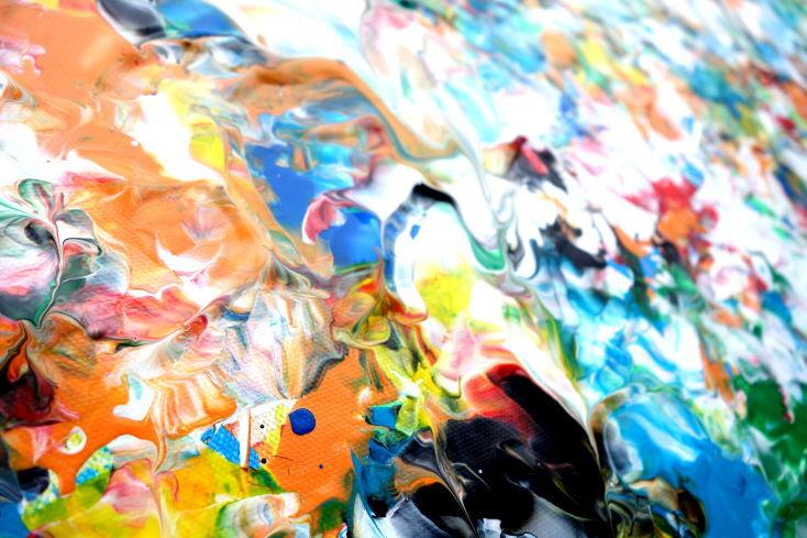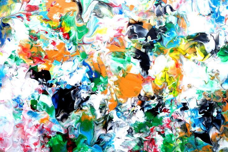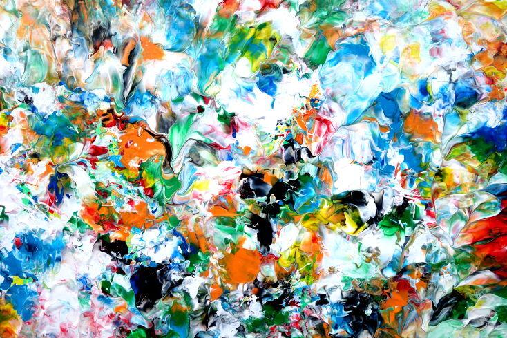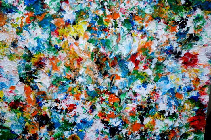 Abstraktes Acrylbild sehr bunt modern Mischtechnik viele bunte helle Farben