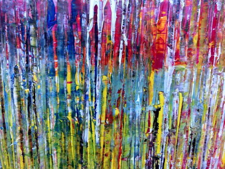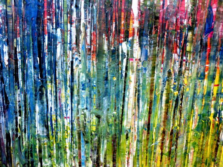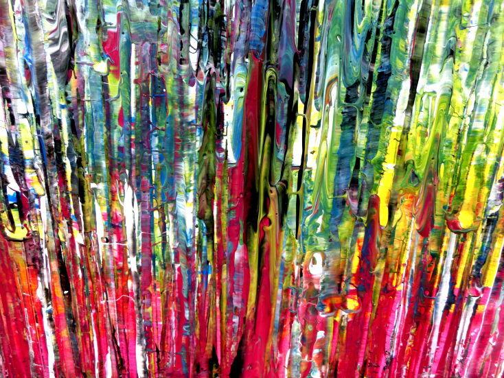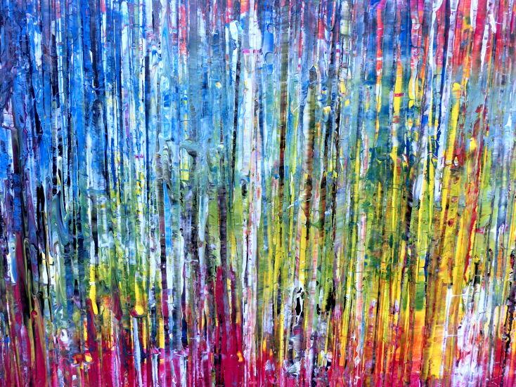 Dieses Werk ist wie alle meine Bilder: spontan entstanden, ganz intuitiv und ohne festes Konzept, und spiegelt oft meine momentane Stimmung wider wie auf der Leinwand festgehalten wurde.