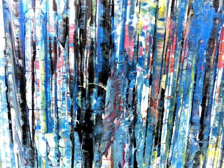 Dieses abstrakte Acrylbild ist ein handgemaltes Original vom Künstler Alex Zerr aus Bad Lisppringe und ist im Jahr 2017 in seinem Atelier entstanden. Das Bild hat eine Größe von 100x180cm und ist bereits auf einem hochwertigen und stabilem Rahmen aufgespannt. Dadurch kann das Bild nach der Lieferung direkt an die Wand gehängt werden und sofort in Ihrem Raum wirken. Alle Seiten des Gemäldes sind passend zum Motiv bemalt, so dass kein zusätzlicher Rahmen benötigt wird.