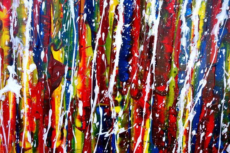 Abstraktes Acrylbild sehr bunt moderne Malerei Action Painting Modern Art zeitgenössisch
