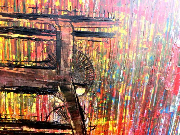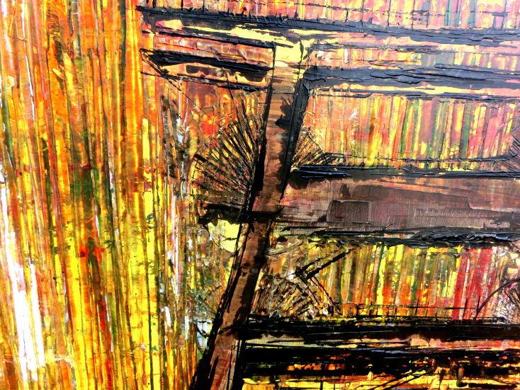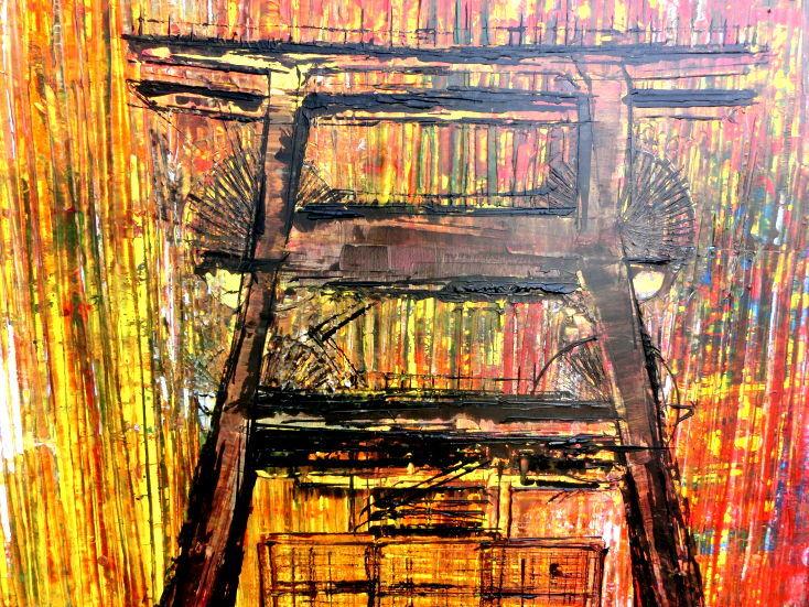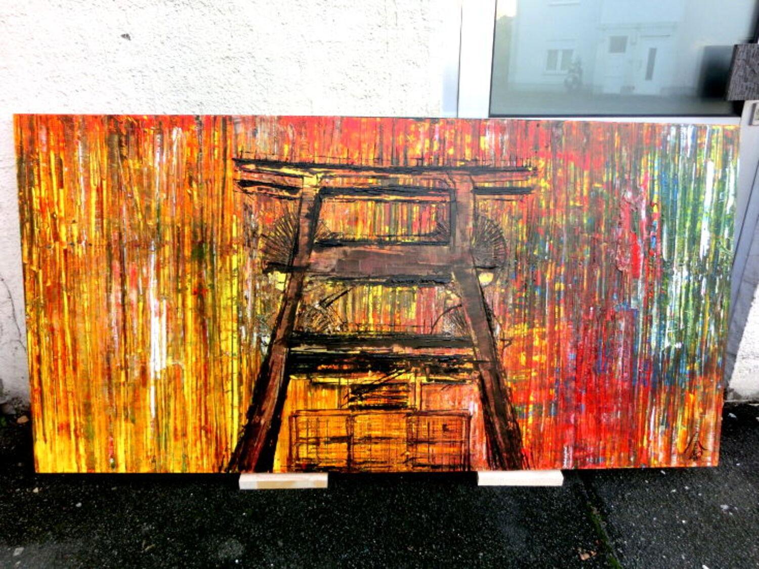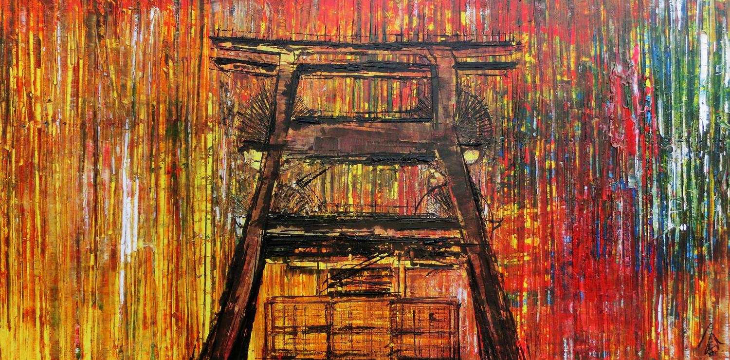 Abstraktes Acrylbild Sehr bunt Spachteltechnik modern mit Förderturm Ruhrgebiet