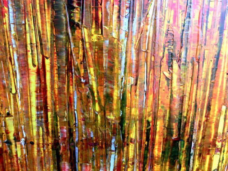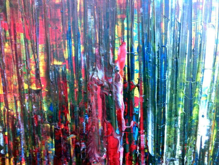 Dieses Werk ist wie alle meine Bilder: spontan entstanden, ganz intuitiv und ohne festes Konzept, und spiegelt oft meine momentane Stimmung wider wie auf der Leinwand festgehalten wurde.