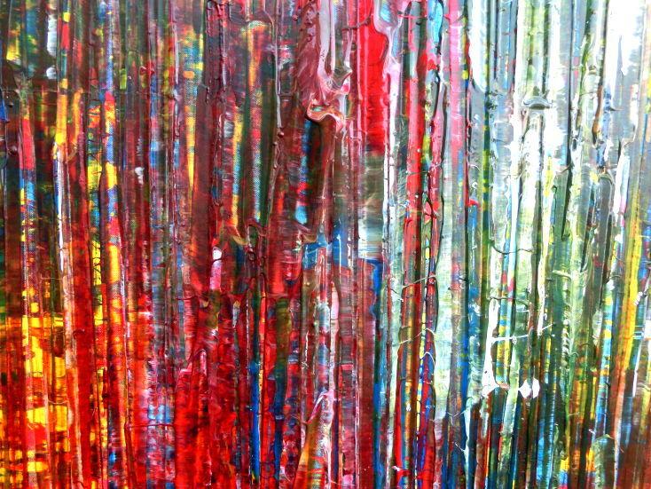 Dieses abstrakte Acrylbild ist ein handgemaltes Original vom Künstler Alex Zerr aus Bad Lisppringe und ist im Jahr 2017 in seinem Atelier entstanden. Das Bild hat eine Größe von 100x200cm und ist bereits auf einem hochwertigen und stabilem Rahmen aufgespannt. Dadurch kann das Bild nach der Lieferung direkt an die Wand gehängt werden und sofort in Ihrem Raum wirken. Alle Seiten des Gemäldes sind passend zum Motiv bemalt, so dass kein zusätzlicher Rahmen benötigt wird.