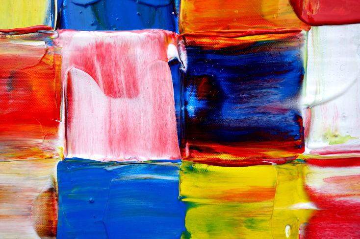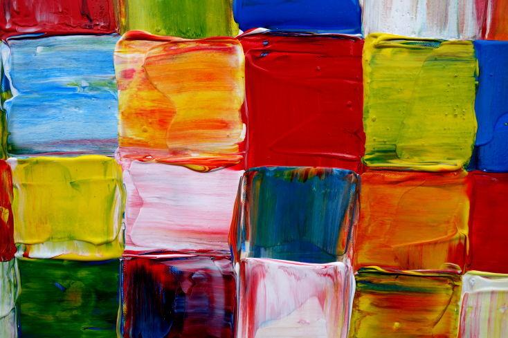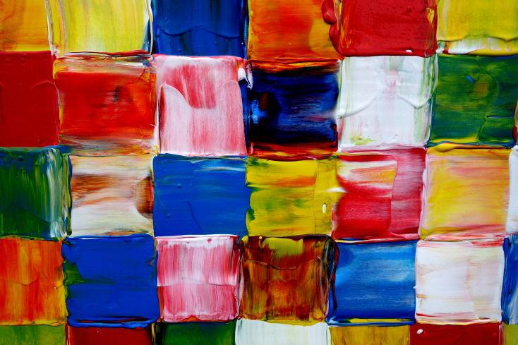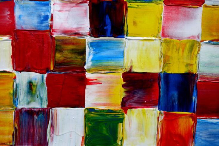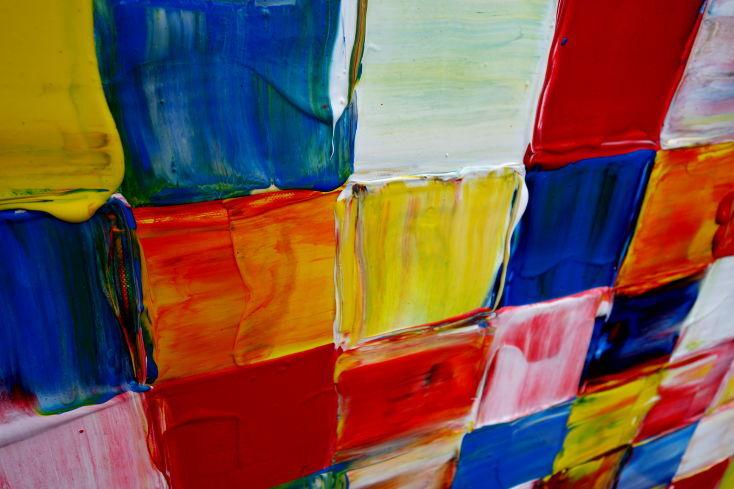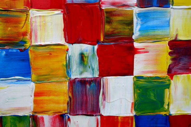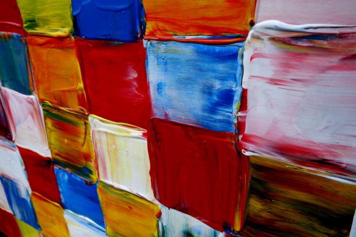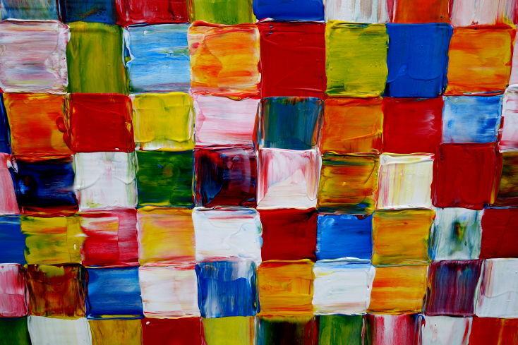 Abstraktes Acrylbild sehr bunt viele bunte Flächen Karomuster zeitgenössisch modern sehr farbig