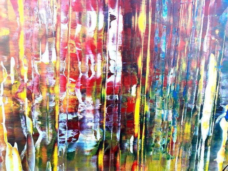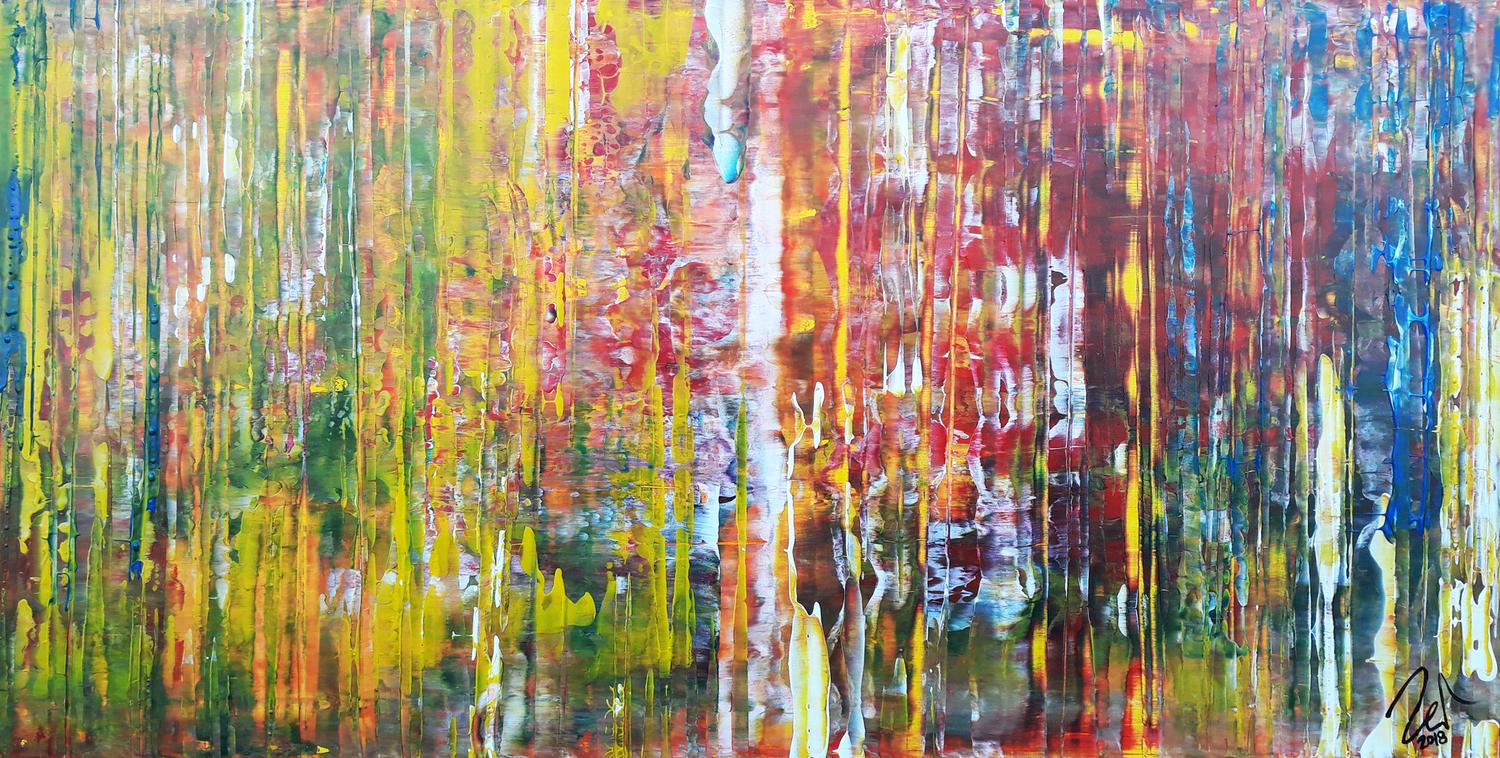 Dieses abstrakte Acrylbild ist ein handgemaltes Original vom Künstler Alex Zerr aus Bad Lisppringe und ist im Jahr 2018 in seinem Atelier entstanden. Das Bild hat eine Größe von 60x120cm und ist bereits auf einem hochwertigen und stabilem Rahmen aufgespannt. Dadurch kann das Bild nach der Lieferung direkt an die Wand gehängt werden und sofort in Ihrem Raum wirken. Alle Seiten des Gemäldes sind passend zum Motiv bemalt, so dass kein zusätzlicher Rahmen benötigt wird.