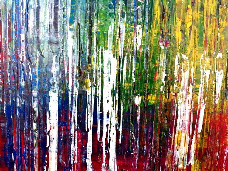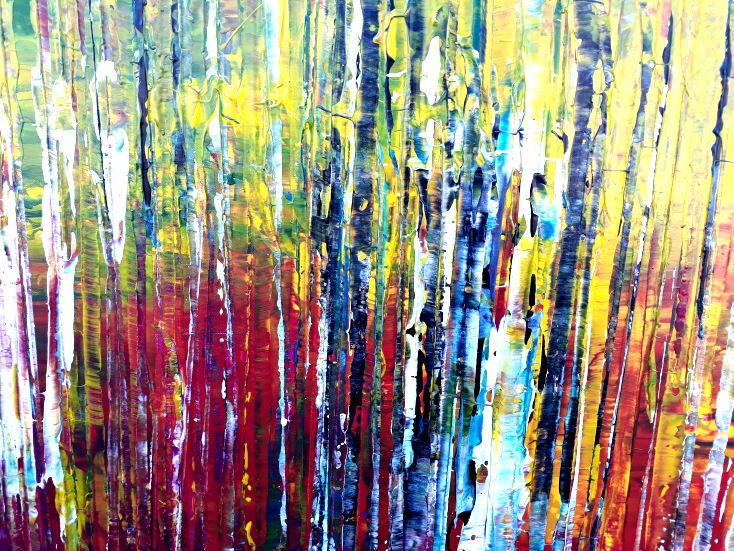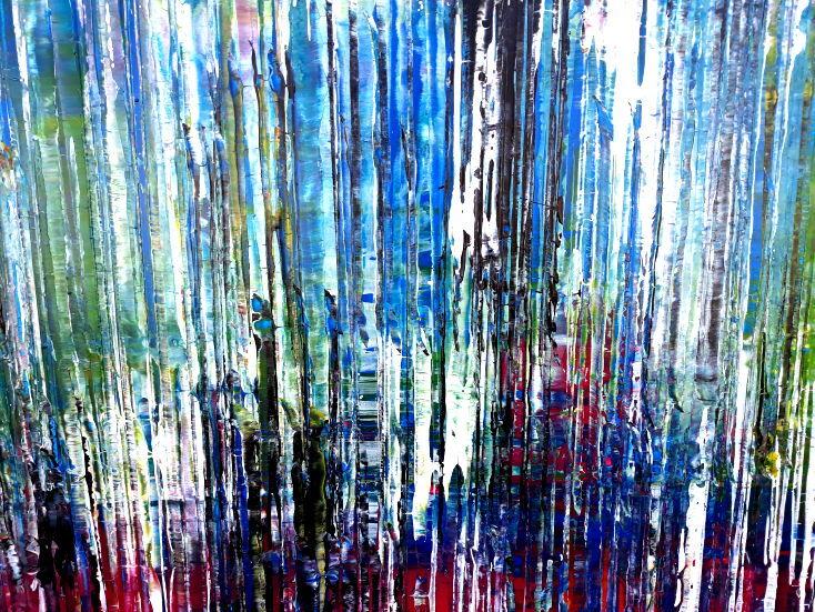 Dieses abstrakte Acrylbild ist ein handgemaltes Original vom Künstler Alex Zerr aus Bad Lisppringe und ist im Jahr 2018 in seinem Atelier entstanden. Das Bild hat eine Größe von 100x200cm und ist bereits auf einem hochwertigen und stabilem Rahmen aufgespannt. Dadurch kann das Bild nach der Lieferung direkt an die Wand gehängt werden und sofort in Ihrem Raum wirken. Alle Seiten des Gemäldes sind passend zum Motiv bemalt, so dass kein zusätzlicher Rahmen benötigt wird.