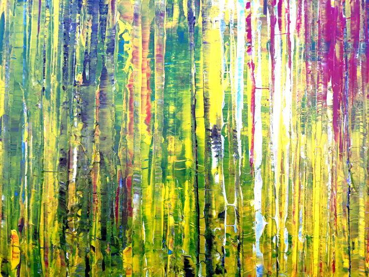 Dieses Werk ist wie alle meine Bilder: spontan entstanden, ganz intuitiv und ohne festes Konzept, und spiegelt oft meine momentane Stimmung wider wie auf der Leinwand festgehalten wurde.