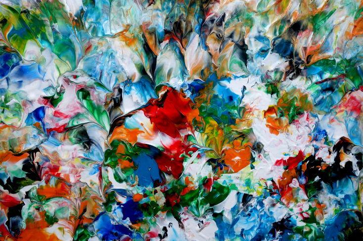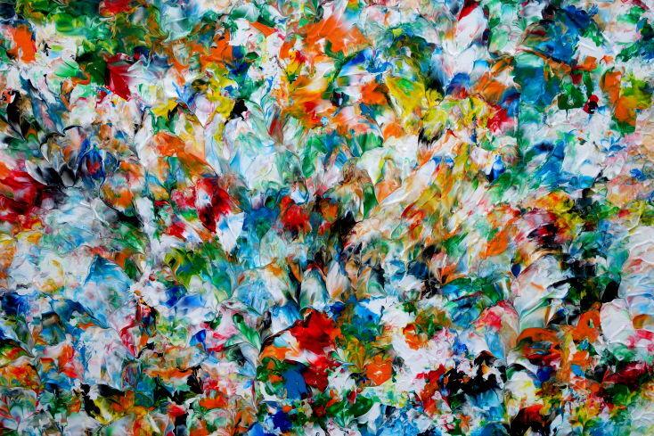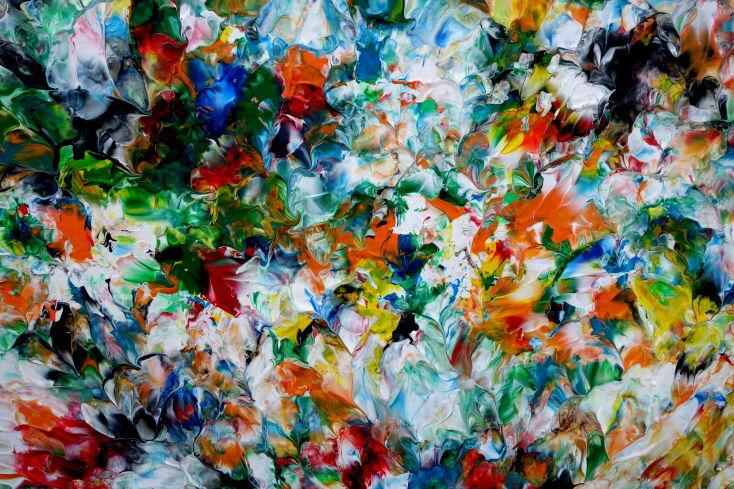 Hallo, ich bin Alex Zerr, der Künstler hinter diesem Gemälde. In meinem Atelier in Bad Lippspringe erschaffe ich abstrakte Acrylbilder, überwiegend im Action-Painting-Stil. Meißtens mit Acrylfarben und auf sehr großen XXL-Leinwänden, die meinem kreativen Prozess besonders viel Freiheit erlauben und oft zu beeindruckenden Gemälden führen.