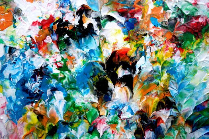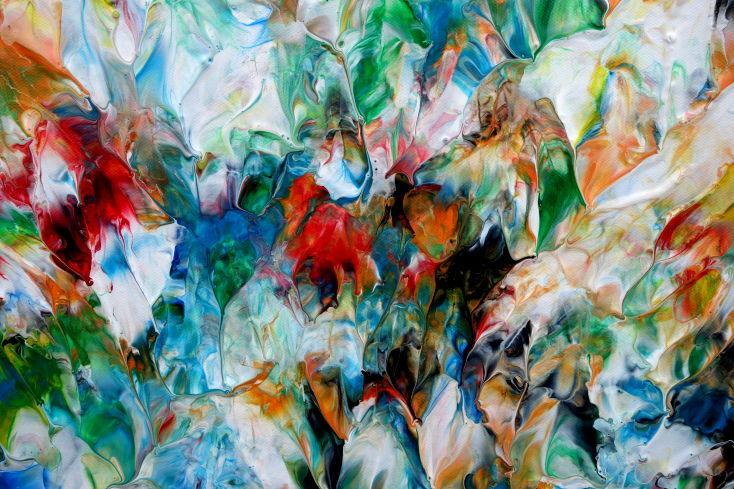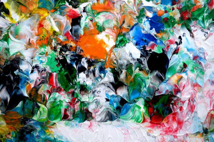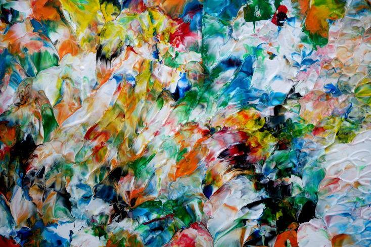 Abstraktes Acrylbild sehr bunt viele Farben zeitgenössisch modern handgemalt
