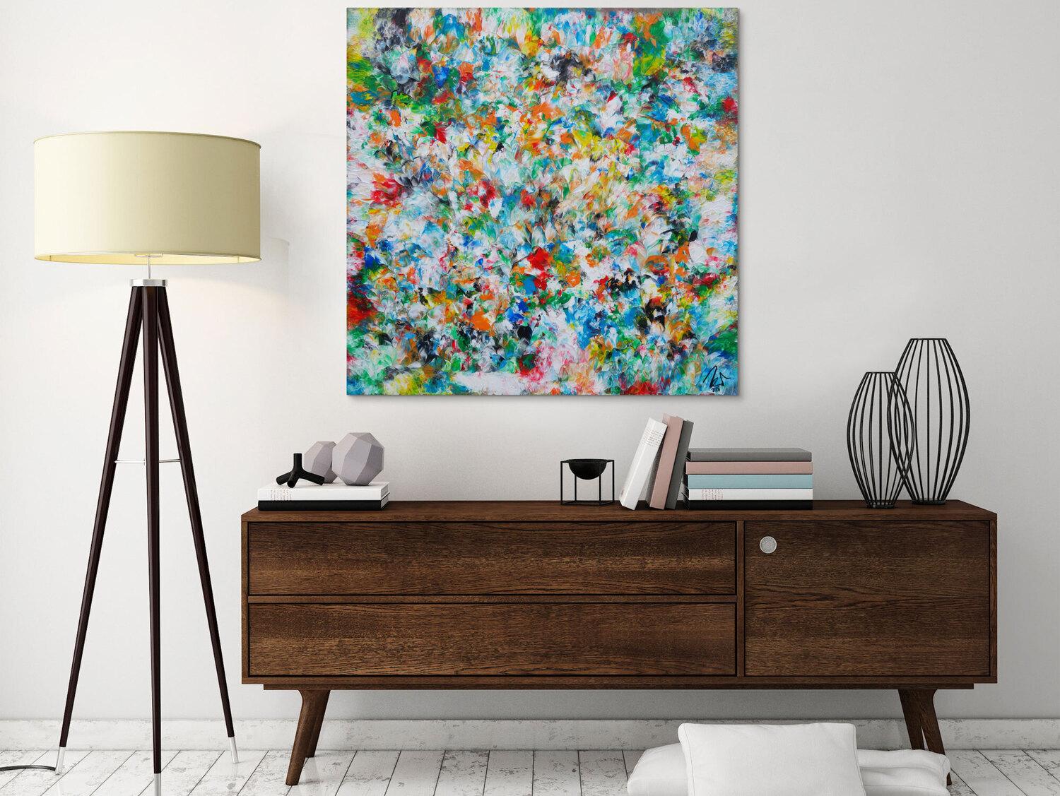 Die großformatigen, abstrakten Acrylgemälde sind ideal für Wohnzimmer, Schlafzimmer, Büros oder Geschäftsräume. Sie setzen farbenfrohe Akzente und schaffen eine lebendige, individuelle Atmosphäre die Sie und Ihre Gäste oder Kunden beeindrucken wird.