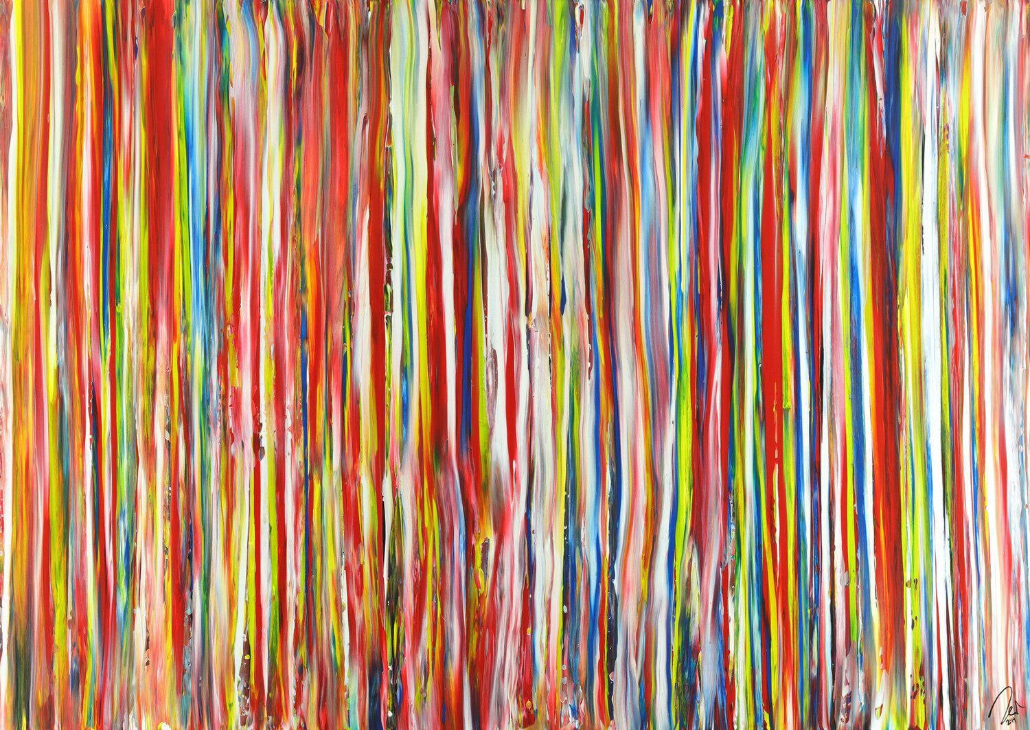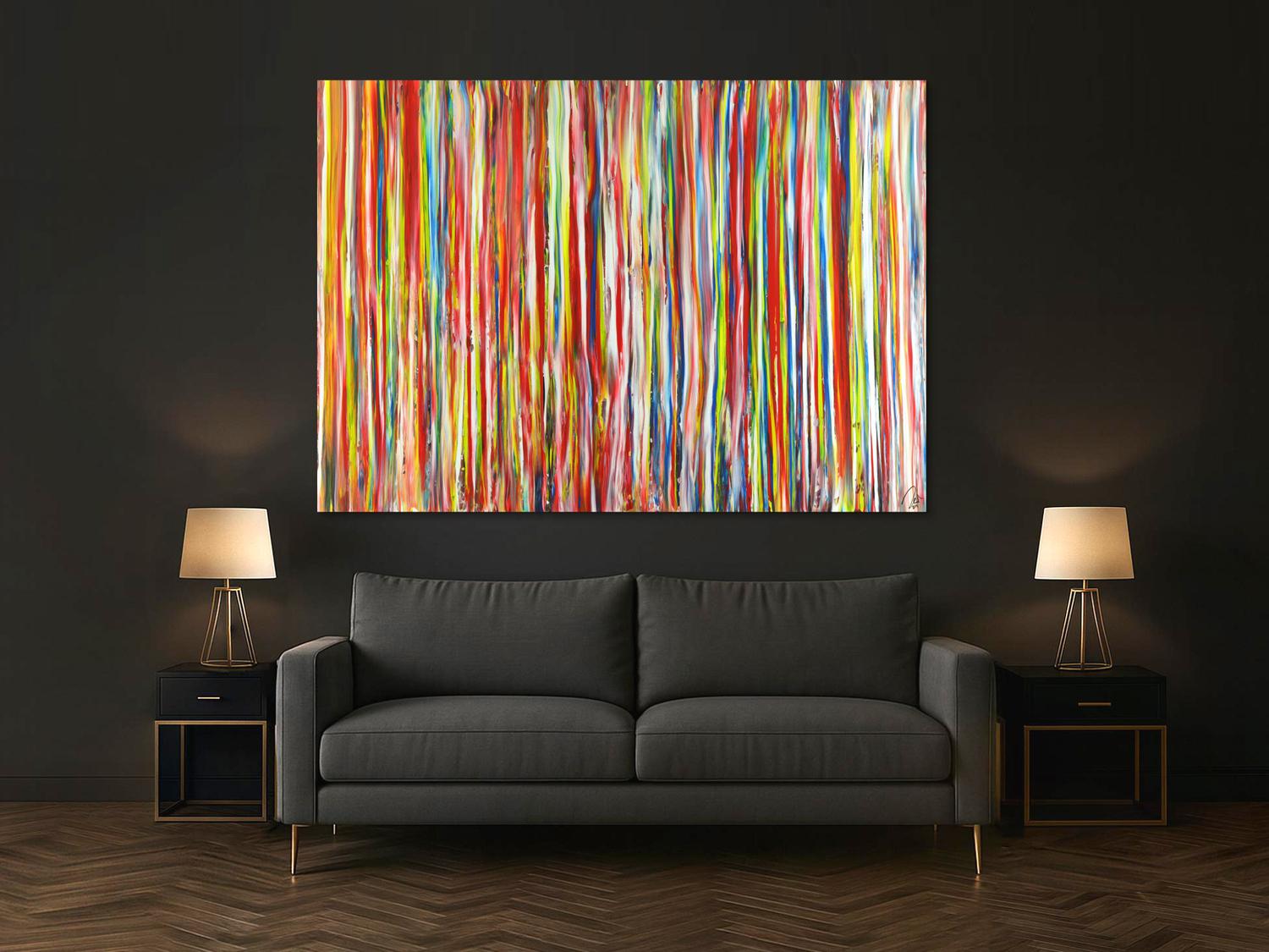 Abstraktes Gemälde auf Leinwand Abstraktes Acrylbild sehr bunte Streifen auf Leinwand handgemalt in XXL Modern Art in 140x200cm von Alex Zerr