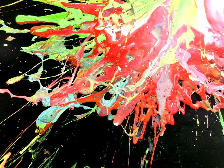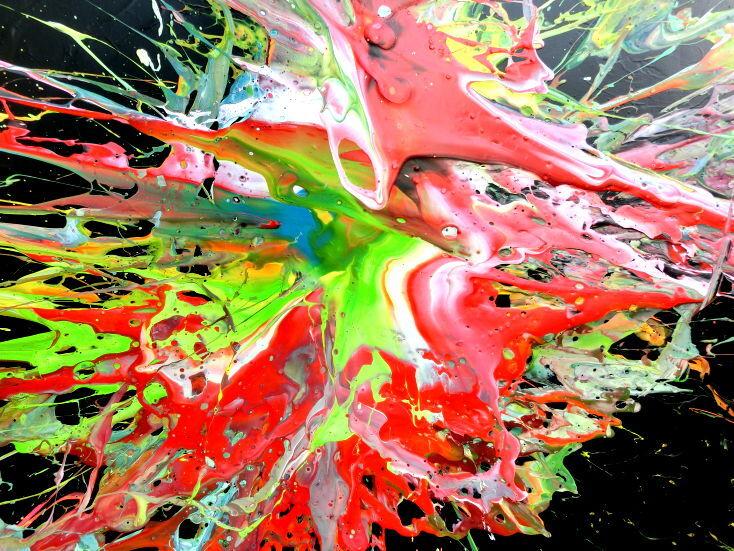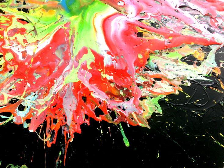 Abstraktes Acrylbild sehr modern Acrtion Painting Splash Art sehr bunt zeitgenössisch schwarzer Hintergrund