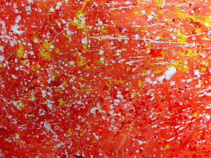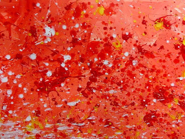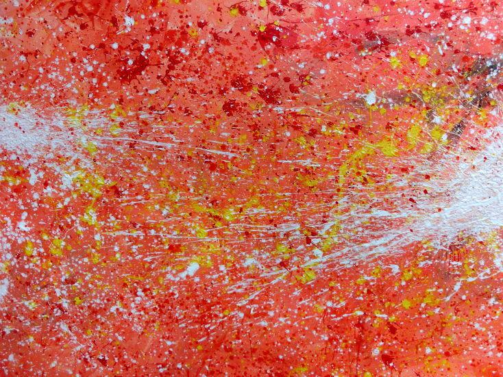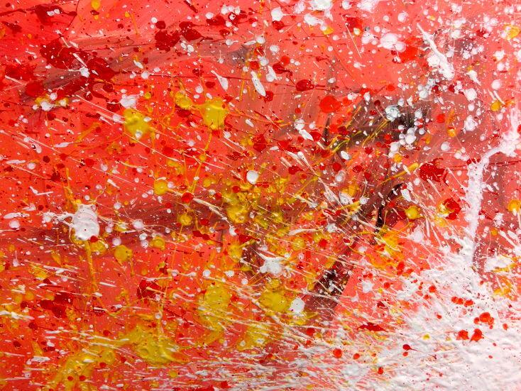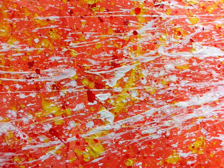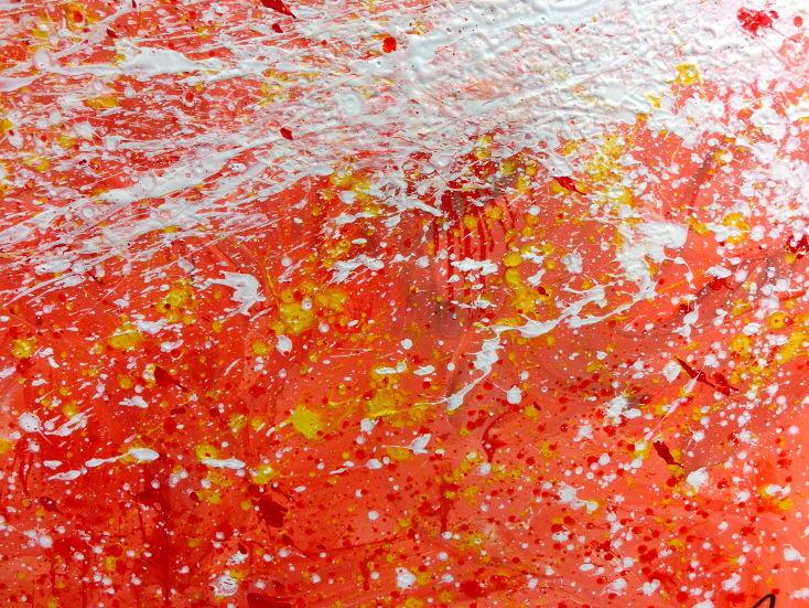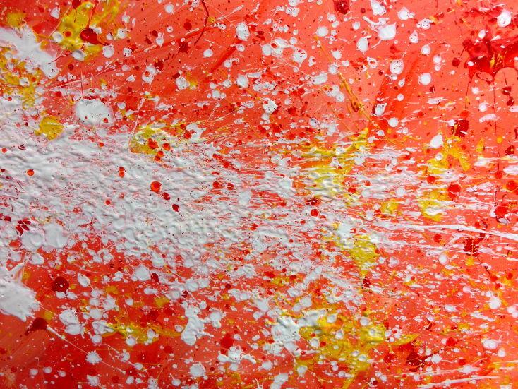 Abstraktes Acrylbild sehr modern Action Painting in orange weiß blass rosa rot gelb