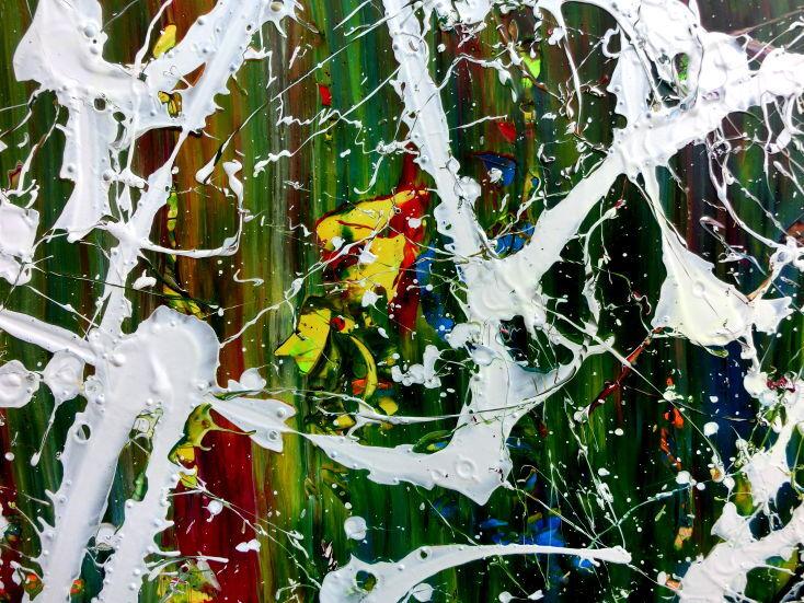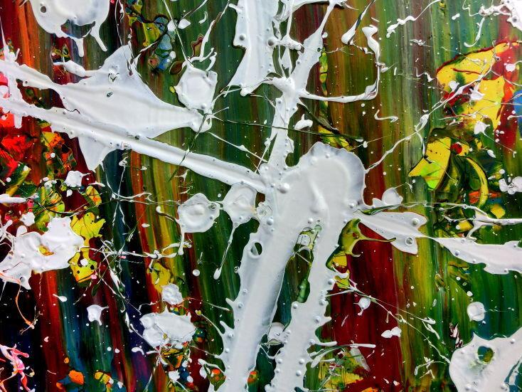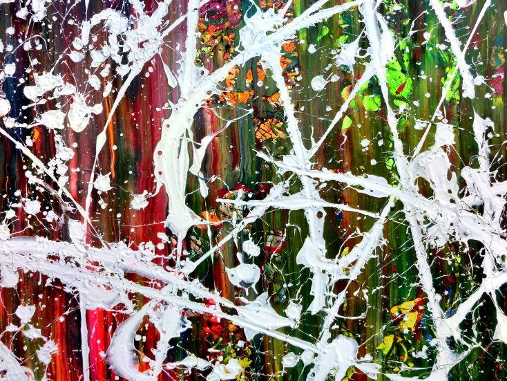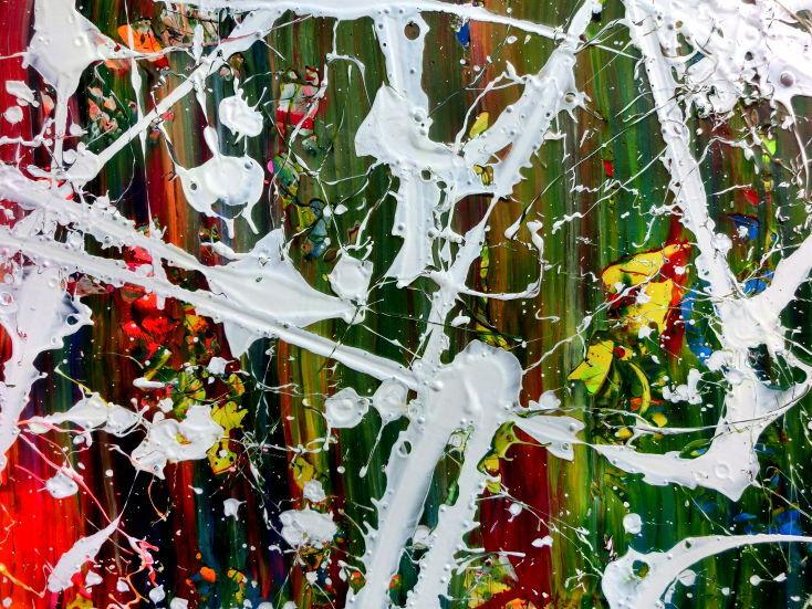 Abstraktes Acrylbild sehr modern Actionpainting sehr bunt mit vielen Farben