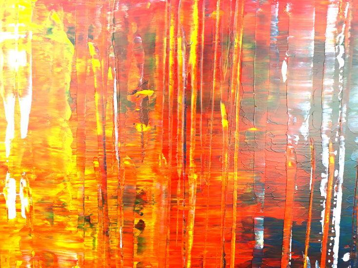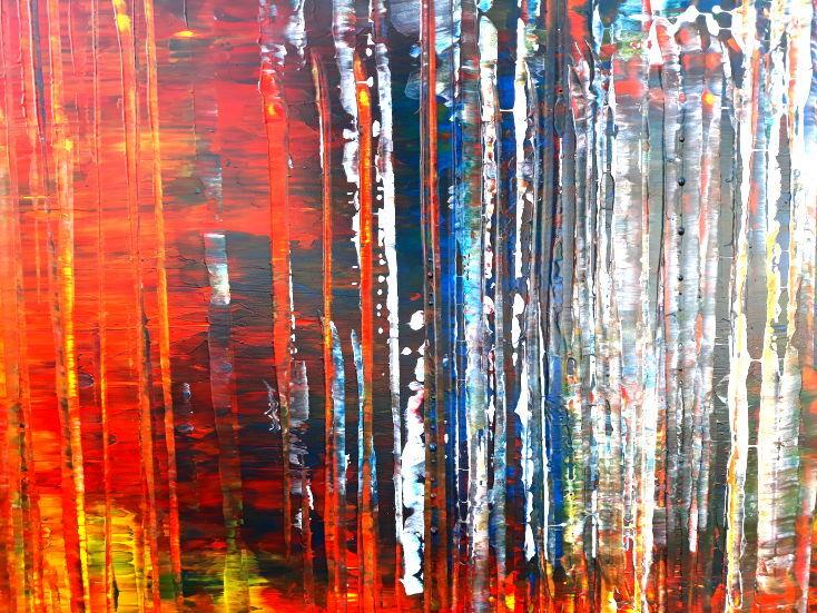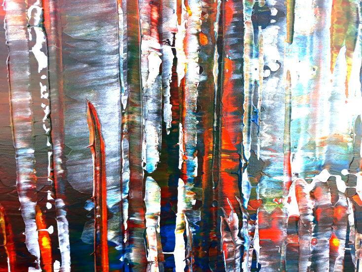 Dieses abstrakte Acrylbild ist ein handgemaltes Original vom Künstler Alex Zerr aus Bad Lisppringe und ist im Jahr 2018 in seinem Atelier entstanden. Das Bild hat eine Größe von 100x200cm und ist bereits auf einem hochwertigen und stabilem Rahmen aufgespannt. Dadurch kann das Bild nach der Lieferung direkt an die Wand gehängt werden und sofort in Ihrem Raum wirken. Alle Seiten des Gemäldes sind passend zum Motiv bemalt, so dass kein zusätzlicher Rahmen benötigt wird.