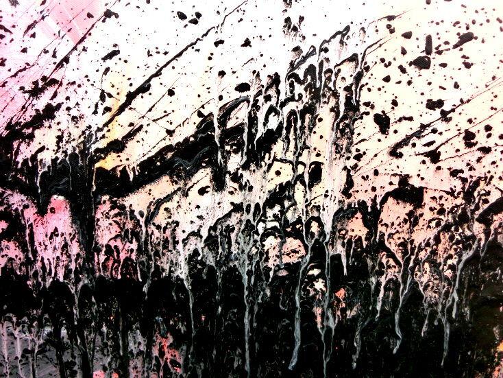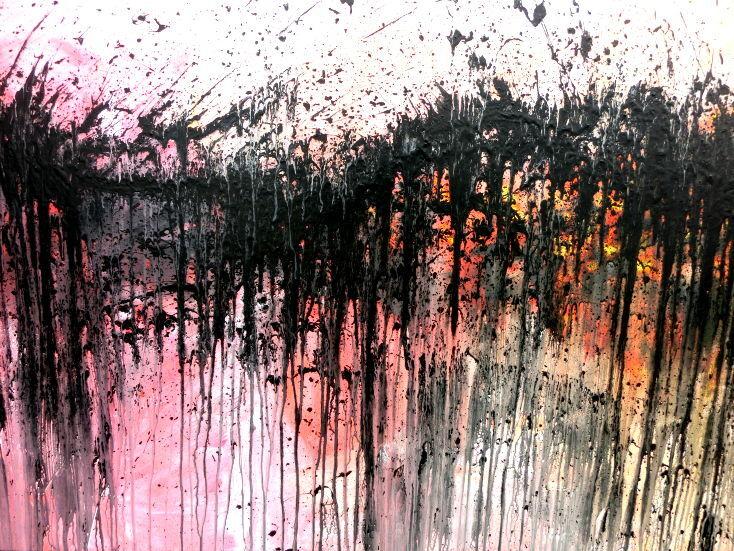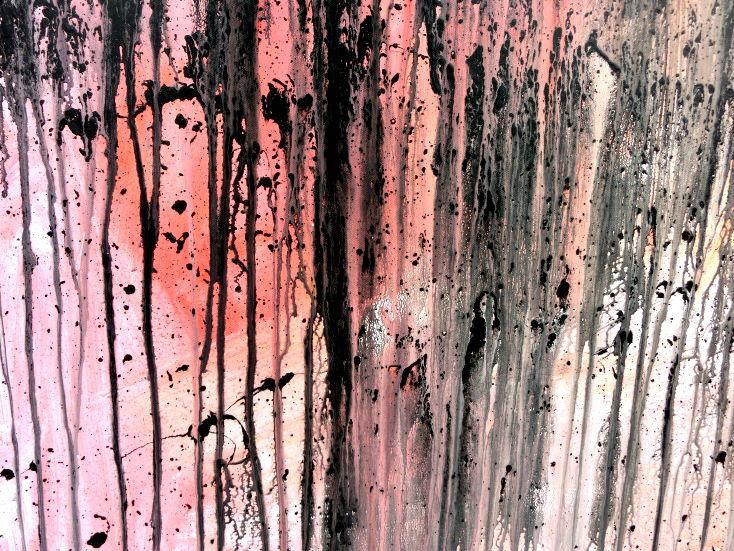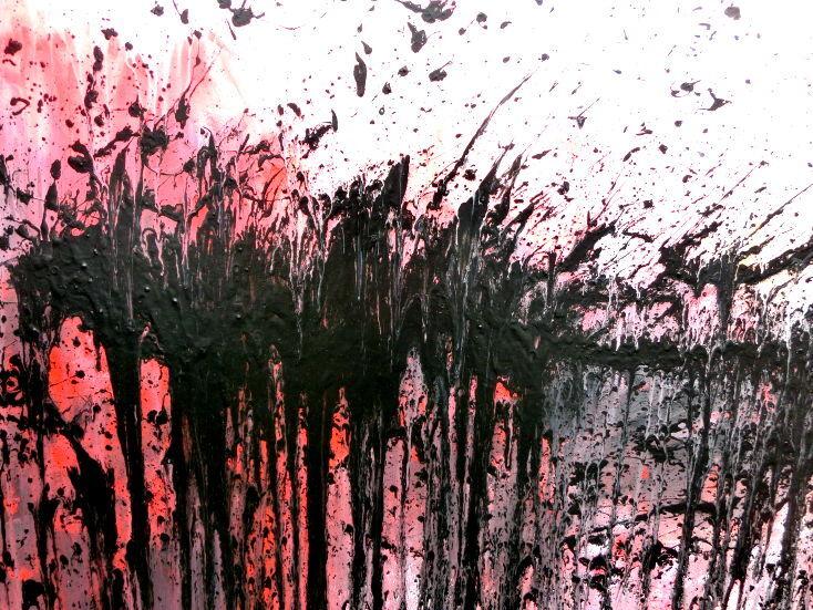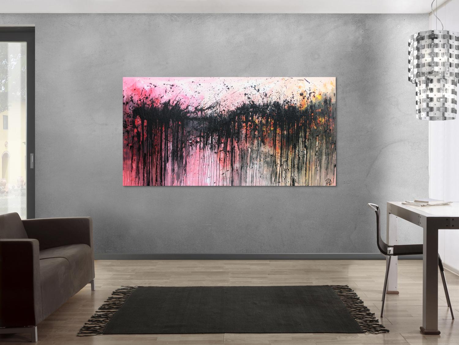 Abstraktes Acrylbild sehr modern in rosa weiß schwarz und orange