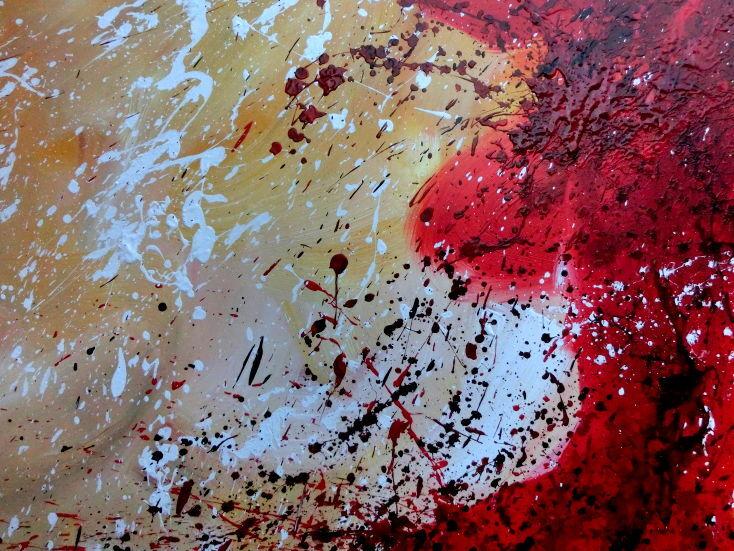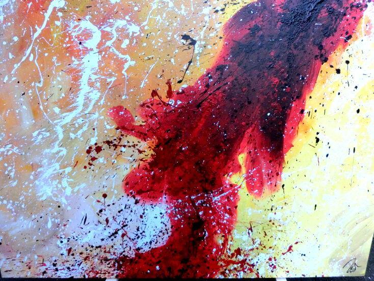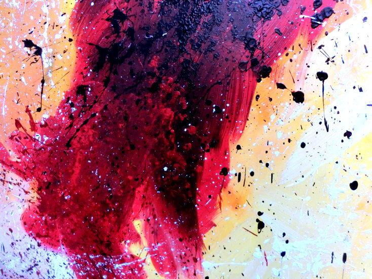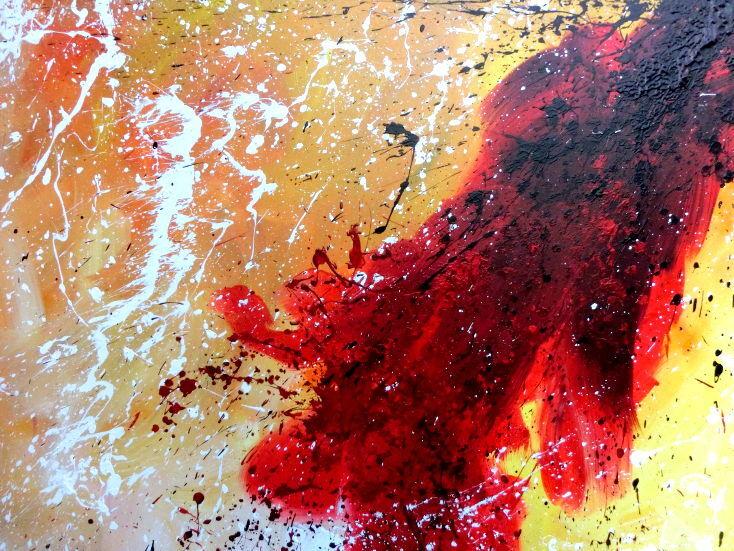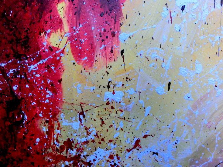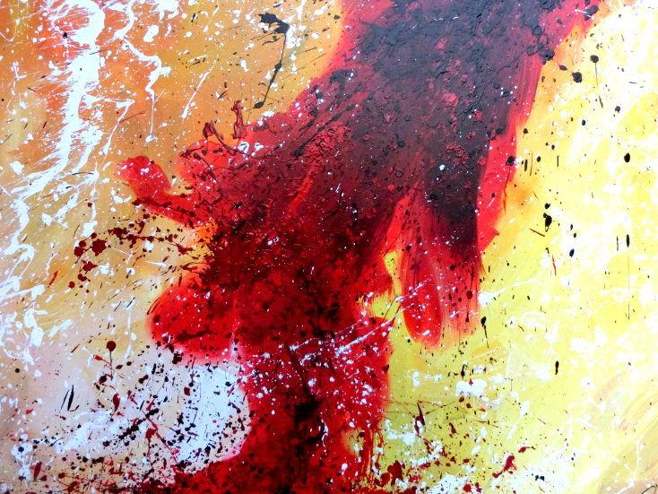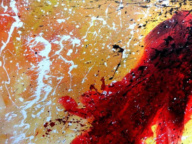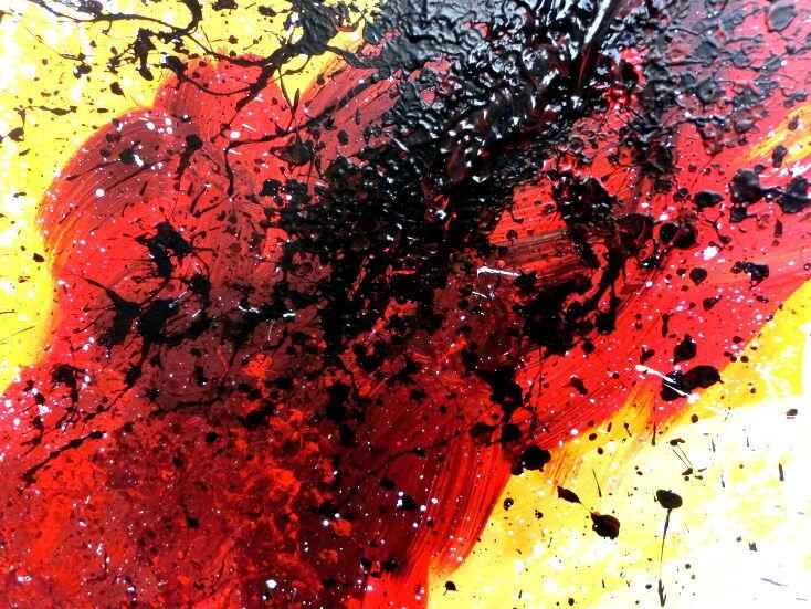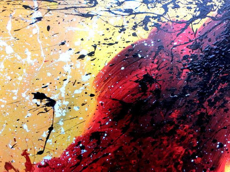 Abstraktes Acrylbild sehr modern in rot weiß schwarz gelb warme Farben